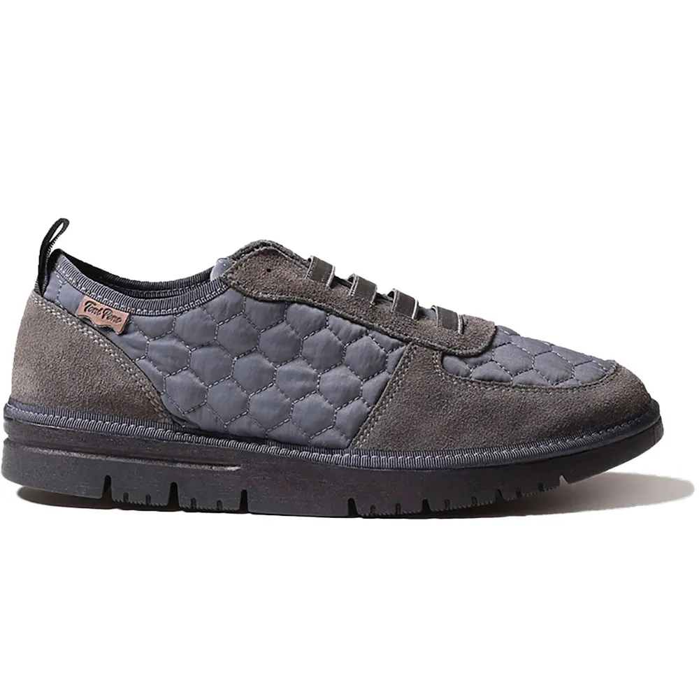 Он выполнен из комбинации стеганой ткани и замшевой отделки в тон.