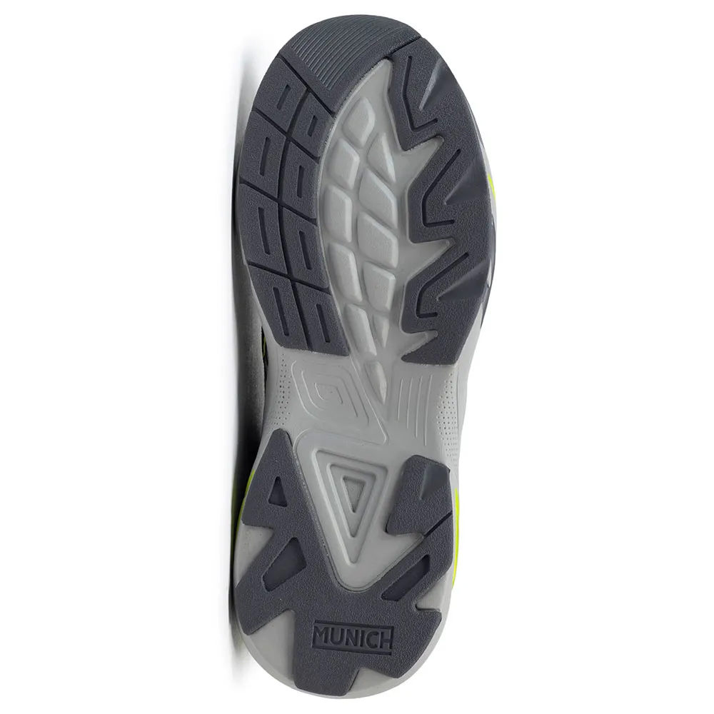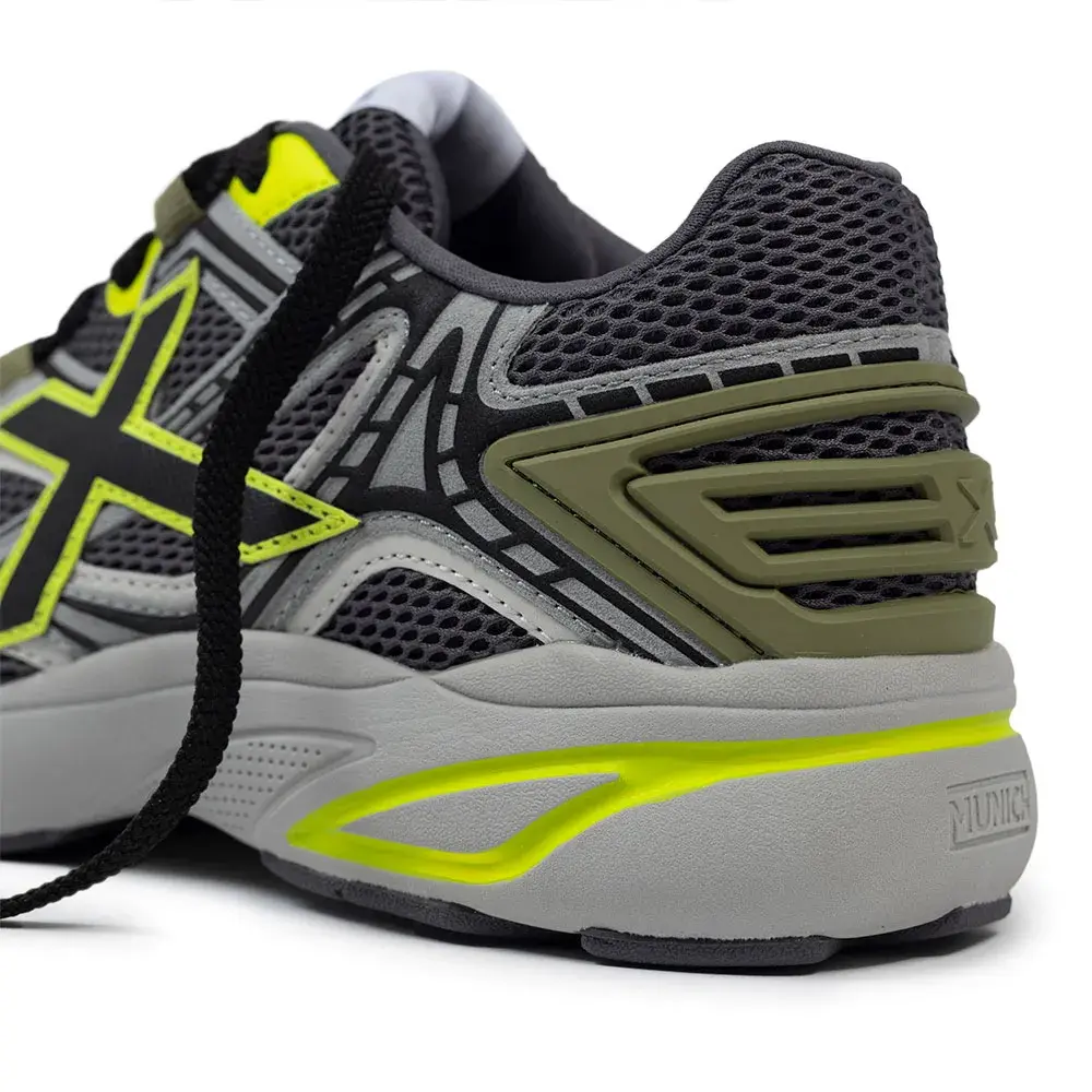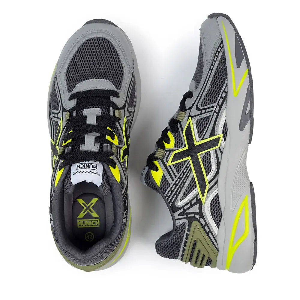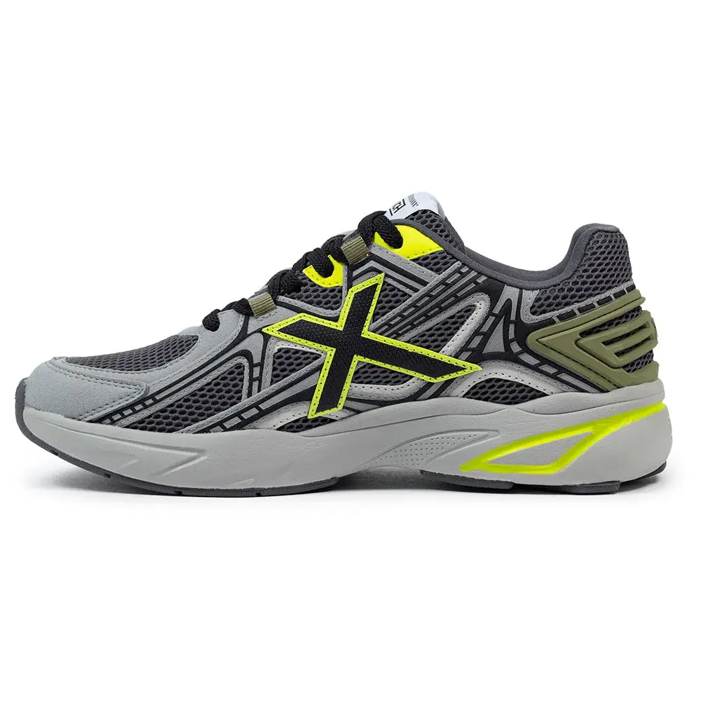 Верх обуви сочетает в себе техническую сетку, искусственную кожу с нанесенным графическим рельефом и синтетическую замшу, а резиновый задник с впрыском обеспечивает устойчивость.