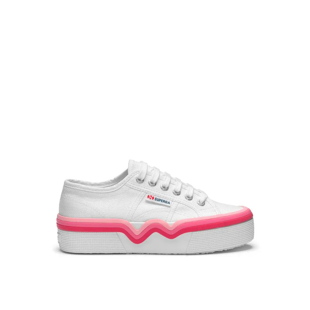 Superga 2740 - это современная платформа, которая остается верной дизайну нашей самой культовой модели: классический и легкий силуэт с верхом из хлопчатобумажной ткани. Модель, украшенная резиновыми профилями с плавными и яркими линиями высококонтрастных оттенков, добавляет игривый акцент в повседневные образы.