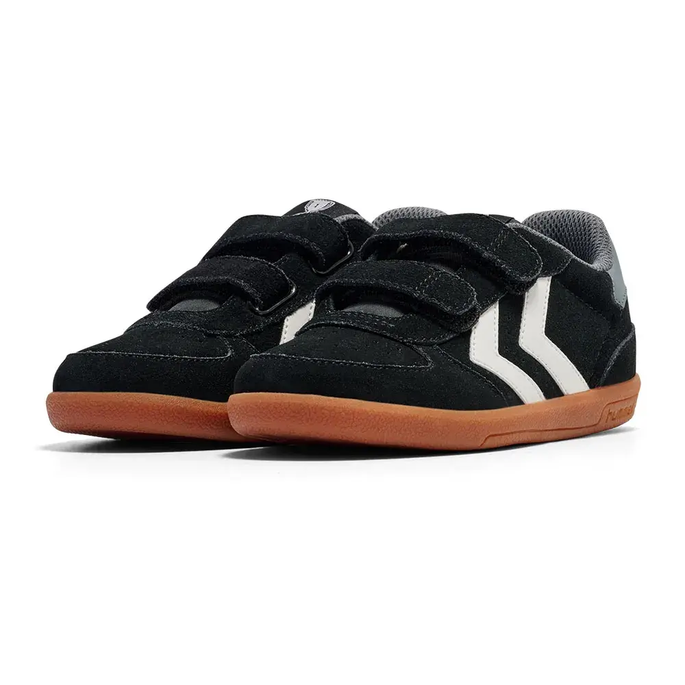 Полностью резиновая подошва обеспечивает детям отличный отскок и амортизацию, разрезная застежка на липучке обеспечивает максимально удобную посадку, а шевроны hummelB и логотип BumblebeeB на пятке дополняют дизайн.