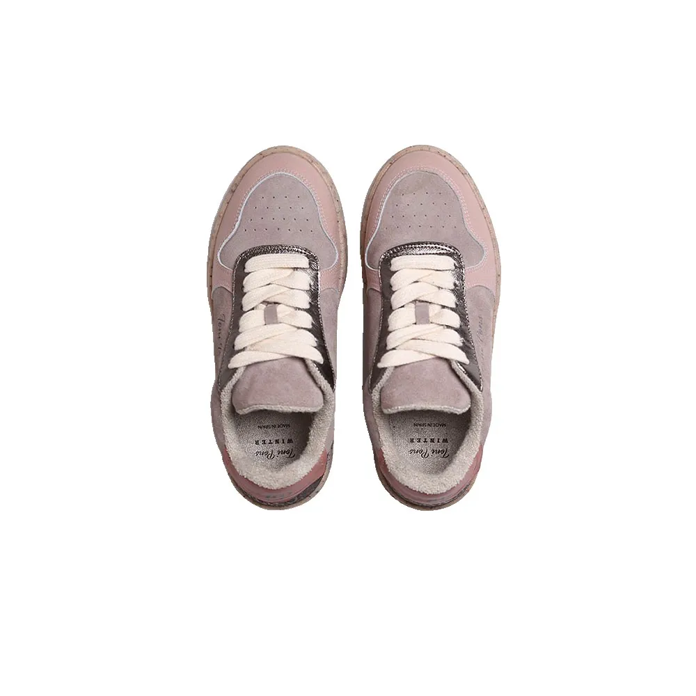 Эти женские зимние кроссовки изготовлены из спилка с кожаными деталями.