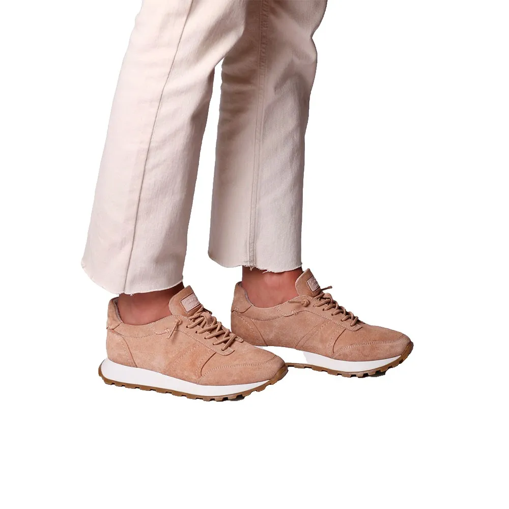 Эти женские кроссовки на шнуровке сделаны из замши.