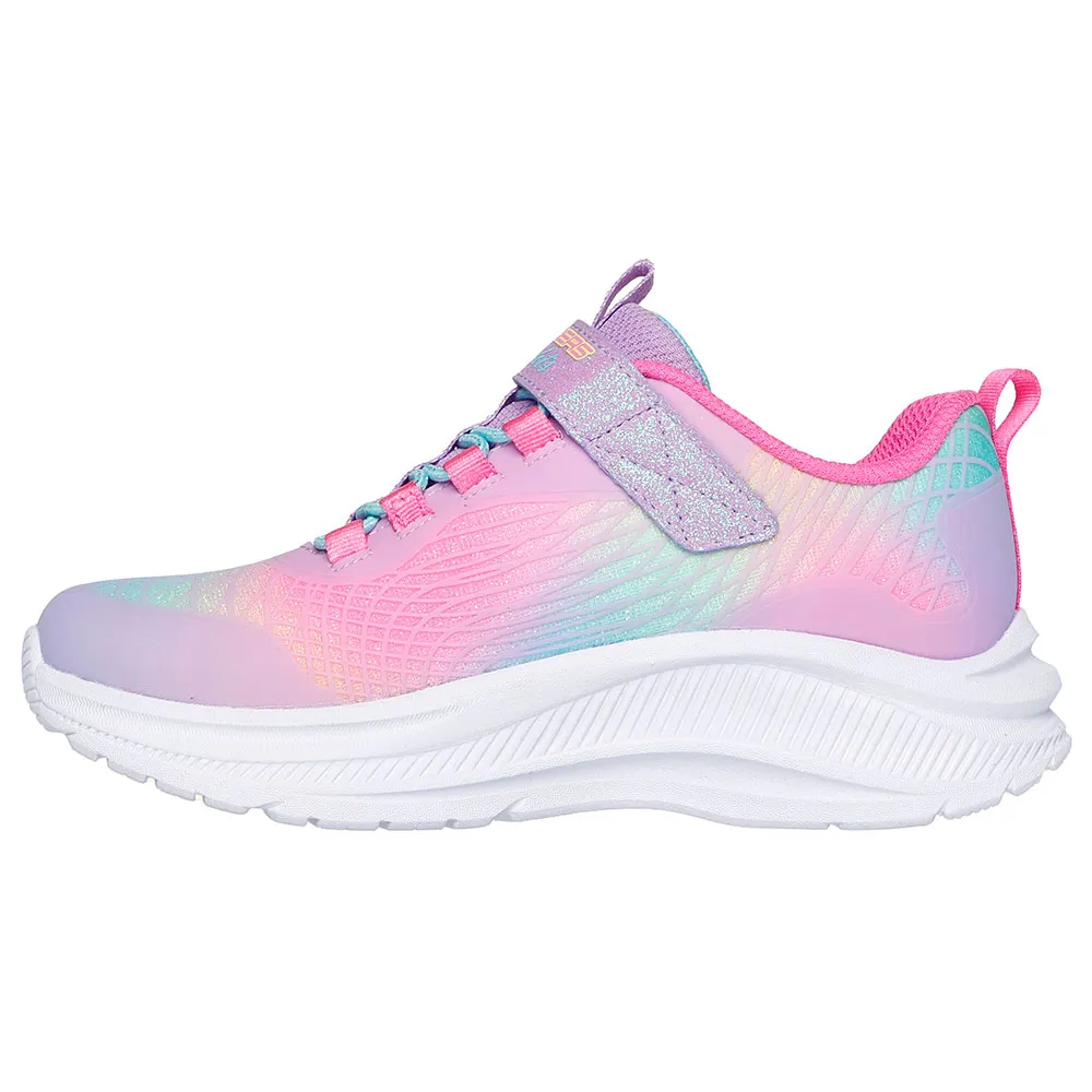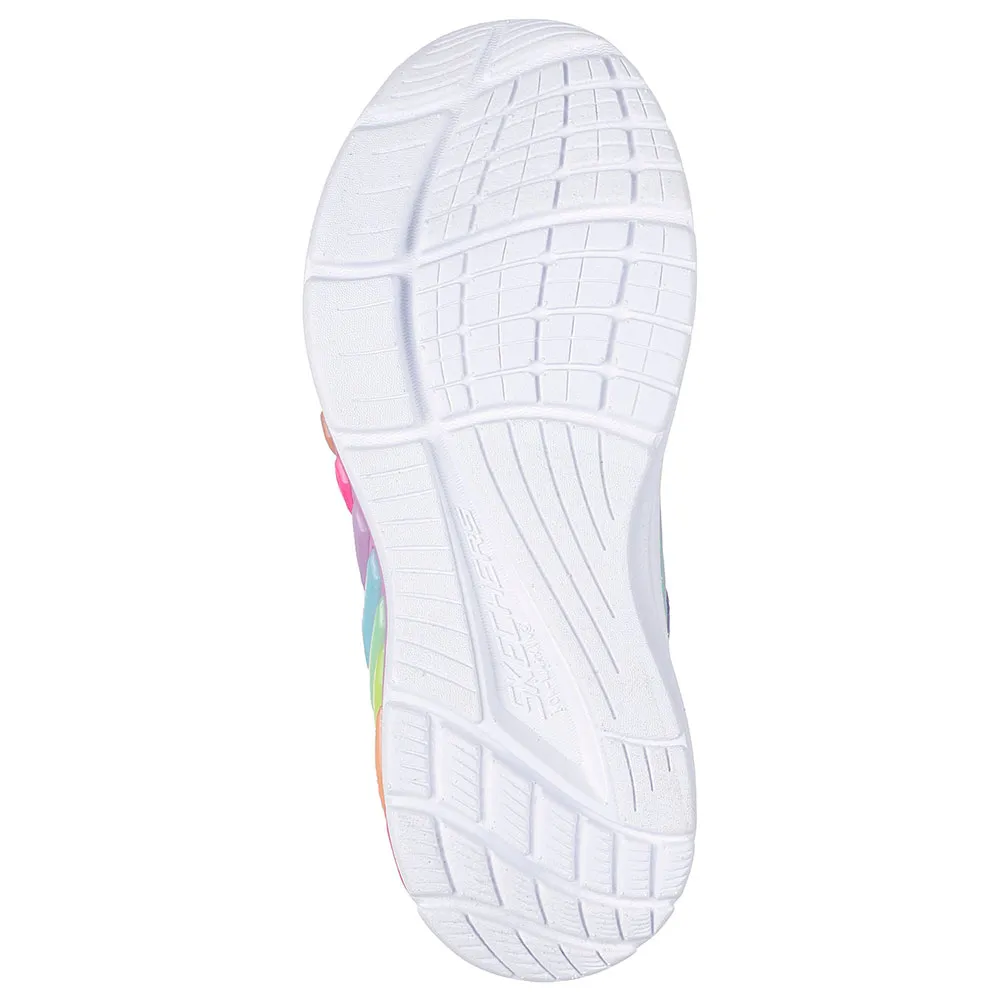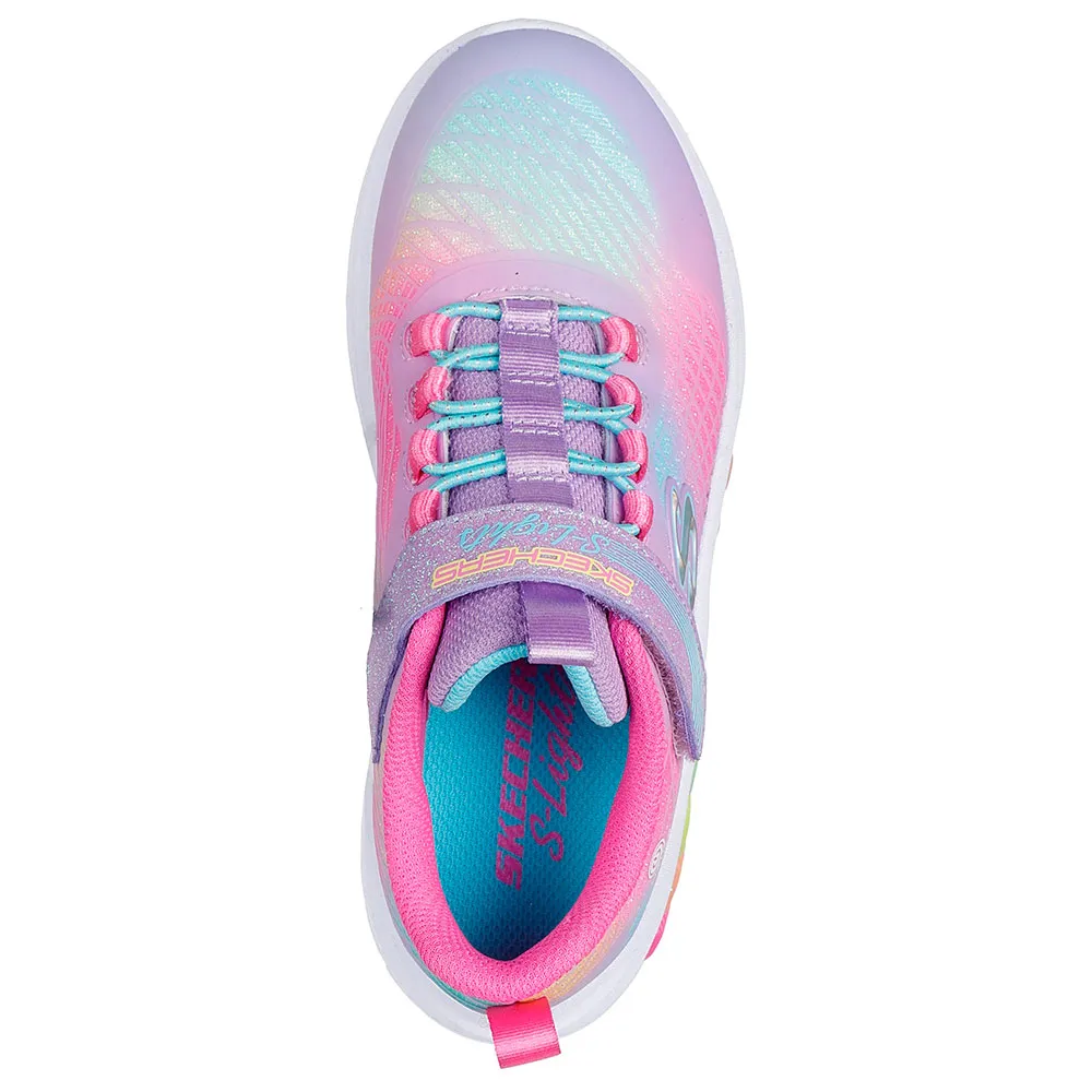 В Skechers Rainbow Cruisers - Rainbow Reflectin сочетаются игривый свет и красочное веселье. Эти кроссовки с подсветкой выполнены из блестящей сетки цвета омбре и синтетического верха с эластичными шнурками и адаптивной застежкой Skechers.