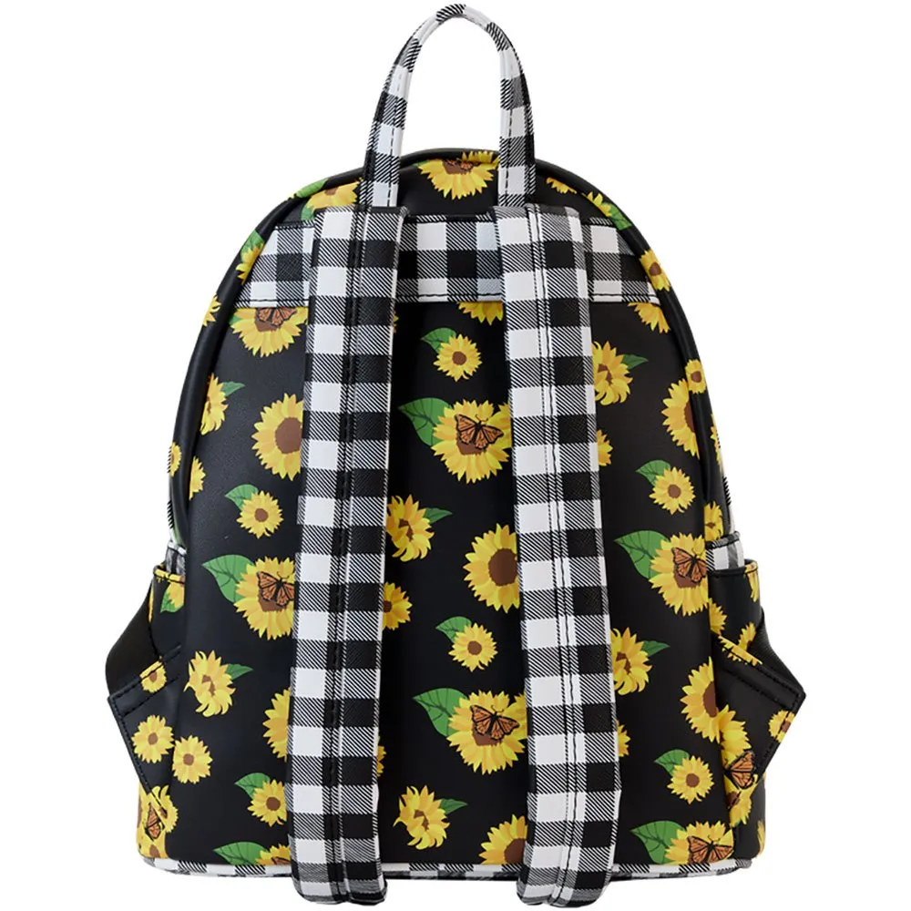 Время, проведенное с друзьями, просто кажется солнечным. Соберитесь в саду с мини-рюкзаком Loungefly Bambi Sunflower Friends, где ярко-желтые подсолнухи покрывают сумку веселым принтом по всей поверхности. Спереди из золотистых лепестков выглядывают Бэмби, Тампер и мисс Банни, а на переднем кармане на молнии формируется большой подсолнух. Внизу, в центре подсолнуха, расположен цветок. Отделка в черно-белую клетку придает дизайну сумки модную нотку и продолжается на регулируемых плечевых ремнях. Этот мини-рюкзак станет ярким дополнением к любому наряду и идеально подойдет для поклонников Disney, которые хотят держать своих любимых персонажей рядом.