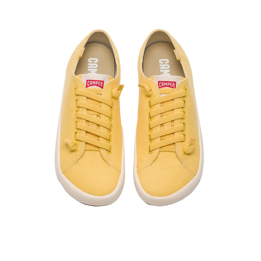 Женские кроссовки Camper Peu Rambla желтого цвета из 100% хлопчатобумажной ткани с эластичными шнурками.