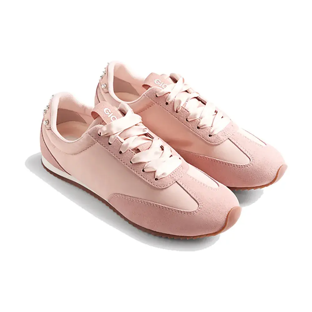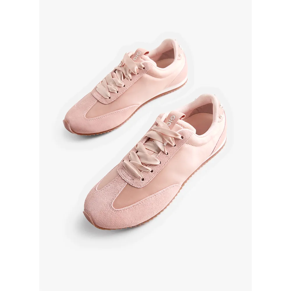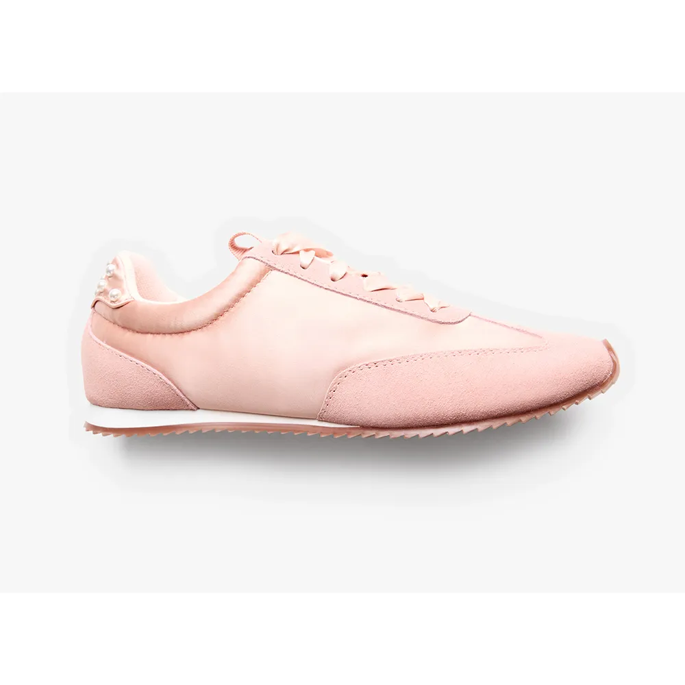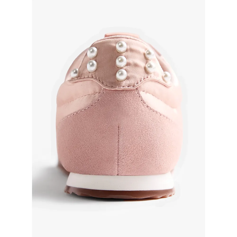 Замшевые кроссовки с атласной отделкой и жемчугом.