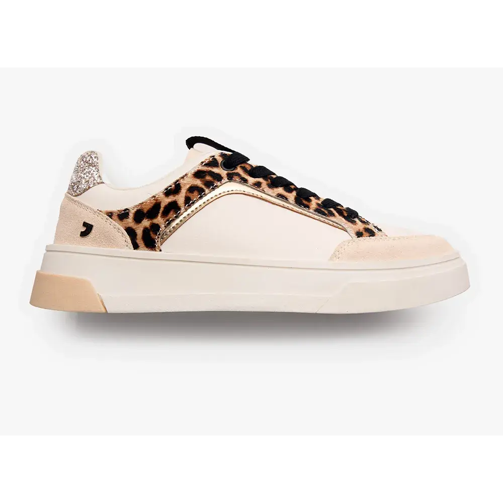 Верх из кожи, полиуретана и блесток.