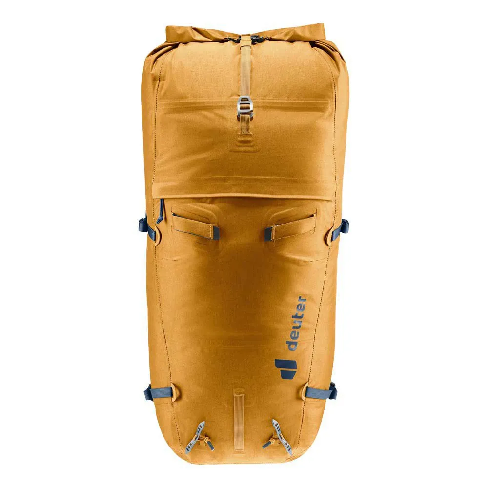 Износостойкий материал, проклеенные и сварные швы, молнии с покрытием из термополиуретана внахлест, а также сворачивающийся клапан гарантируют, что влага не проникнет внутрь этого водонепроницаемого альпинистского рюкзака. Убирающиеся по бокам поясные ремни не только обеспечивают превосходное соотношение комфорта и веса, но и позволяют альпинистам носить рюкзак с обвязкой для скалолазания. Продуманно расположенные петли для крепления и компрессионные ремни для крепления лыж - вот лишь некоторые из особенностей, которые делают этот водонепроницаемый рюкзак таким универсальным.