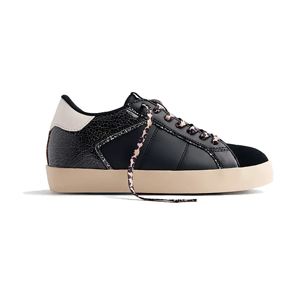 Кожаные кроссовки на внутренней танкетке и шнурках с анималистичным принтом.