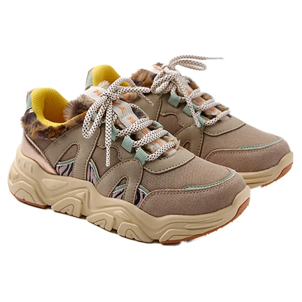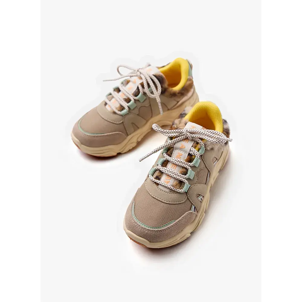 Они украшены металлическими деталями и принтом "зебра", трубчатыми шнурками и съемной стелькой Gio с эффектом памяти - системой, которая смягчает шаг.