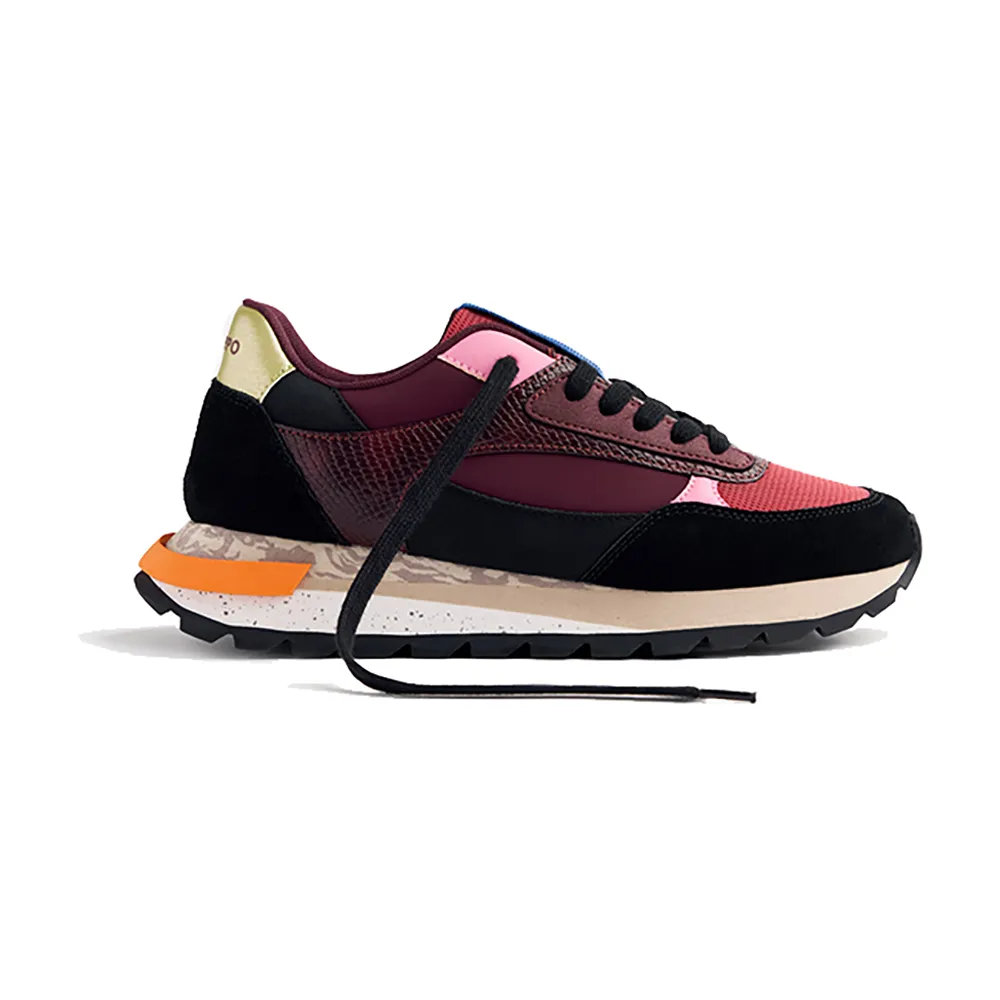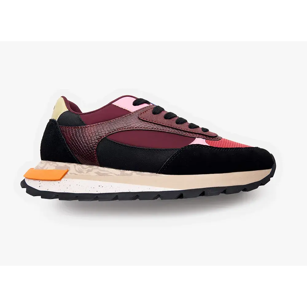 Кожаные кроссовки с сеткой, элементами со змеиным эффектом и принтованной платформой из ЭВА.