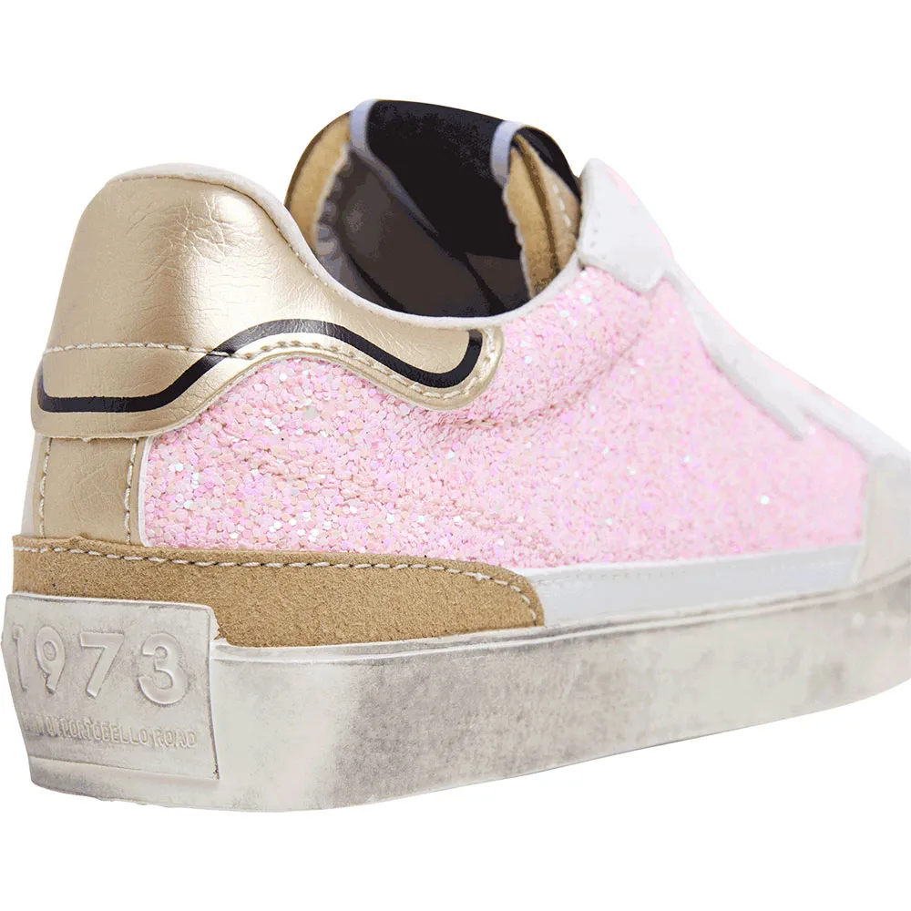 Кроссовки Lane Sequins G из фантазийного материала с блестками, съемной термоформованной стелькой, потертостями в виде потертостей на резиновой подошве и классическим логотипом сбоку.