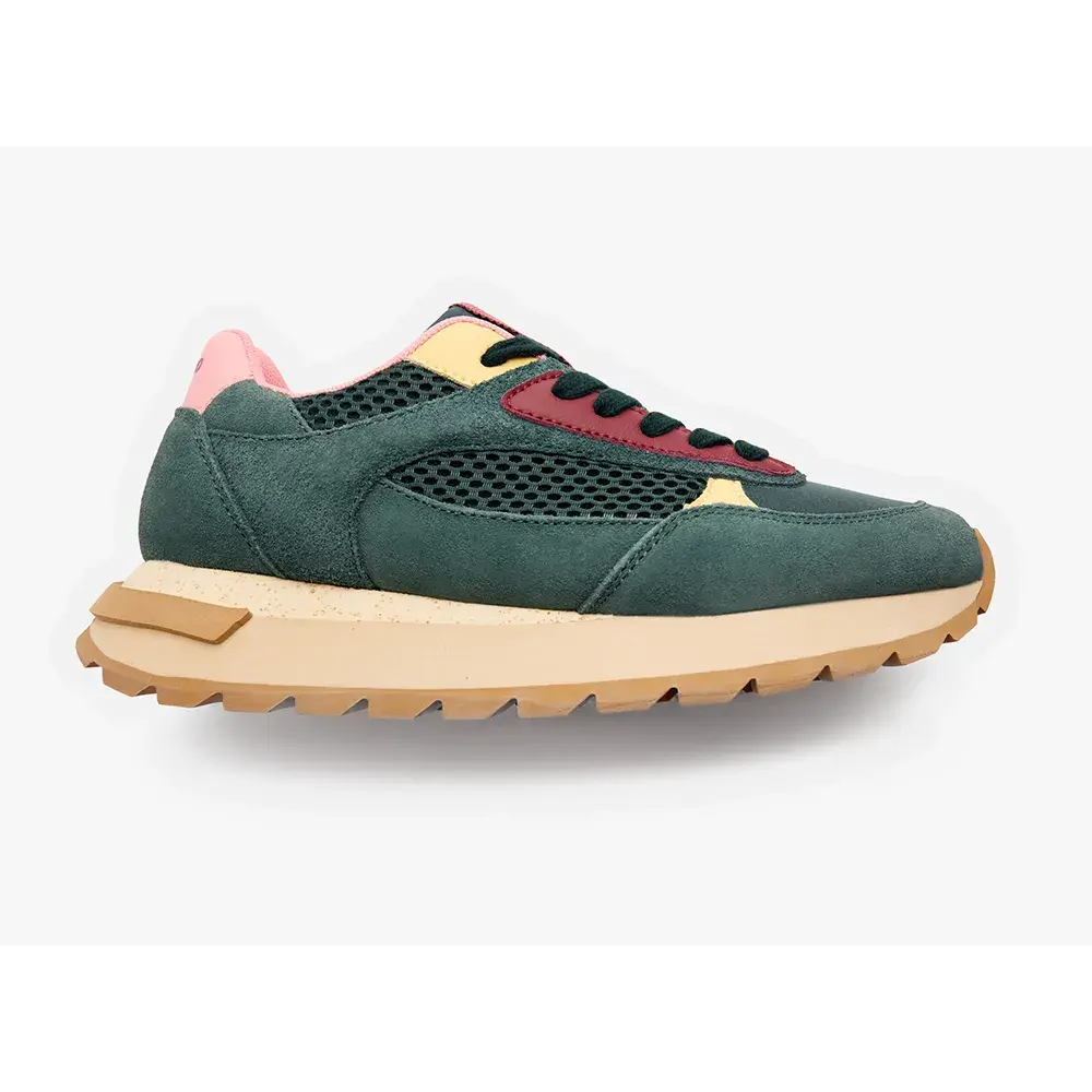 Кроссовки из замшевой кожи с сеткой, нейлоновой вставкой и цветными вставками.