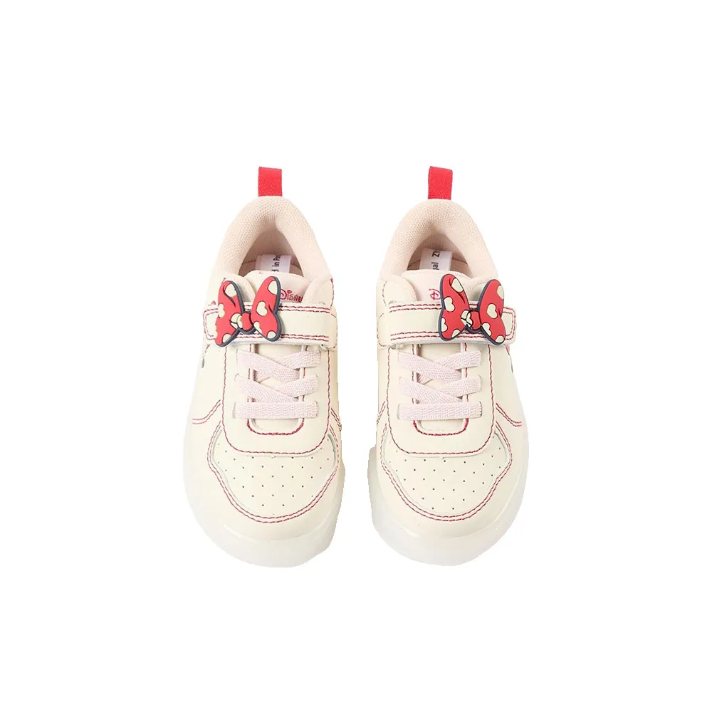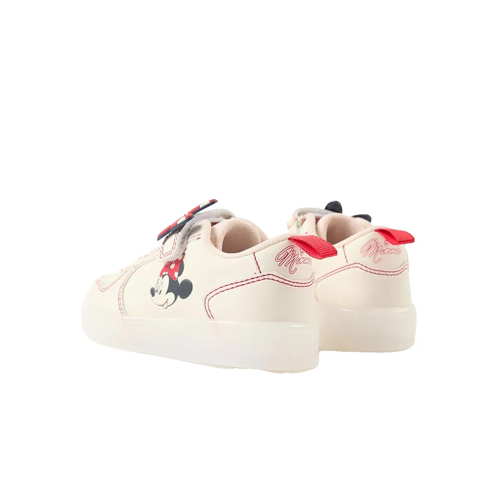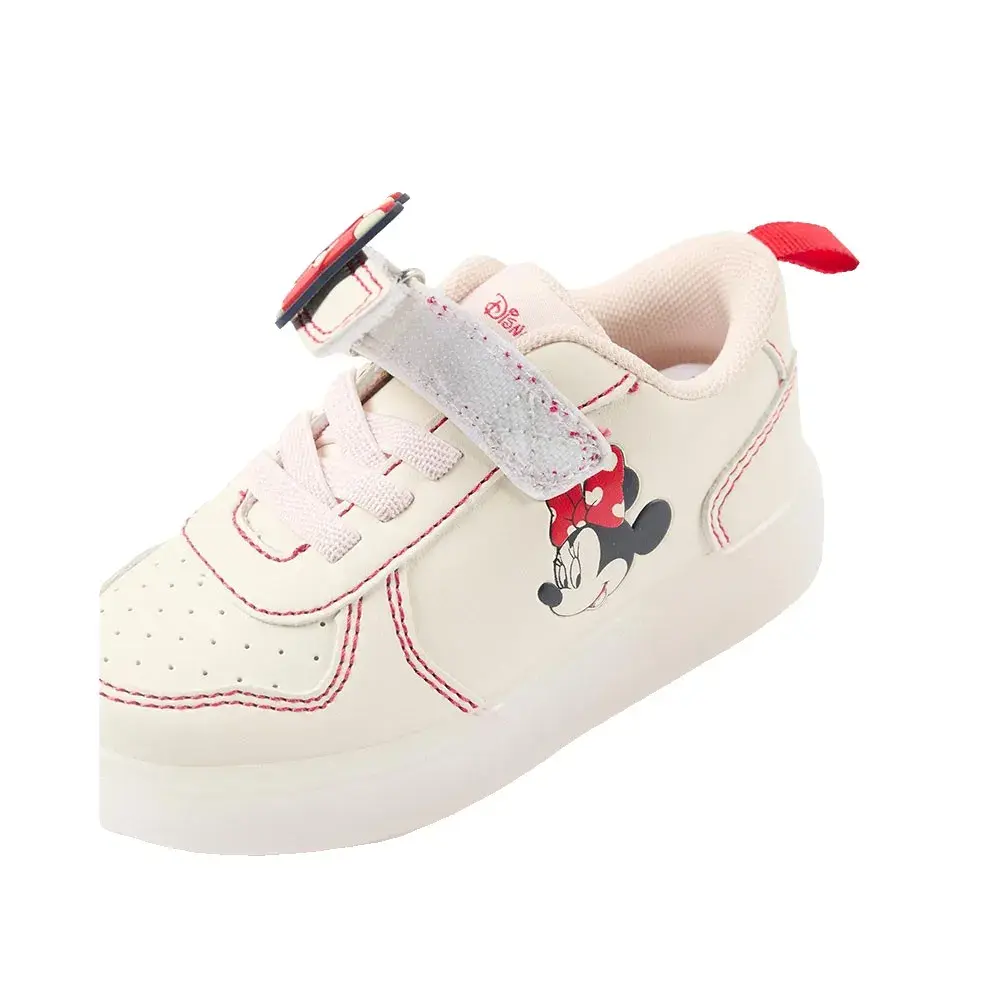 Кроссовки с подсветкой для маленьких девочек, изготовлены из синтетической кожи бежевого и красного оттенков. Рельефные детали в виде Минни. Эластичные шнурки и сенсорная застежка позволяют легко надевать и снимать кроссовки. Сетчатая подкладка для повышения воздухопроницаемости. Полупрозрачная резиновая подошва с нескользящими светодиодными лампочками, активирующимися при ходьбе. Пользуется большим успехом у детей. Стельки Big Me с полукруглым рисунком помогут вашему ребенку легко определить соответствующую форму стопы, способствуя его независимости.