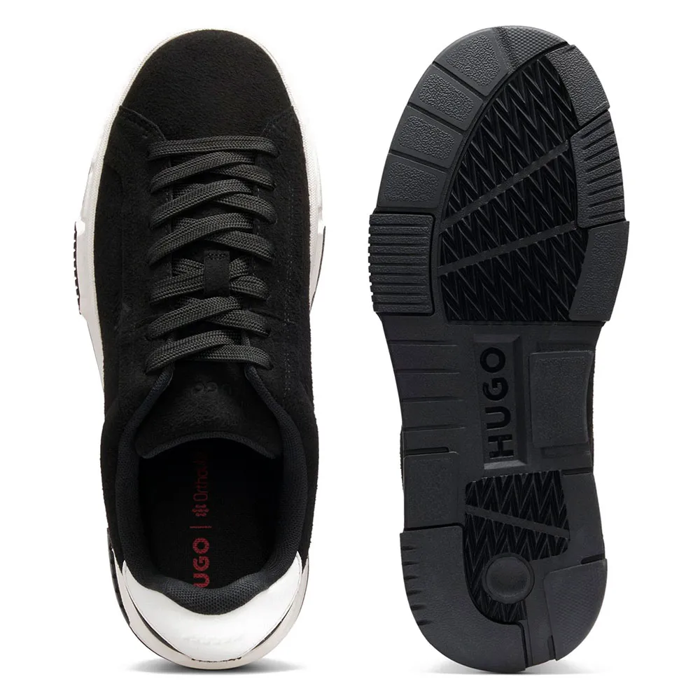 Мужские кроссовки HUGO с характерными зигзагообразными деталями и необработанной окантовкой для глаз придают динамичности любому образу. Верх из мягкой искусственной замши.