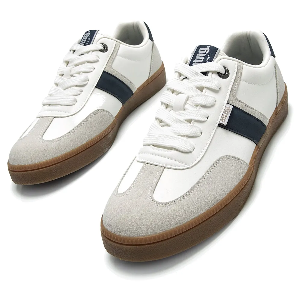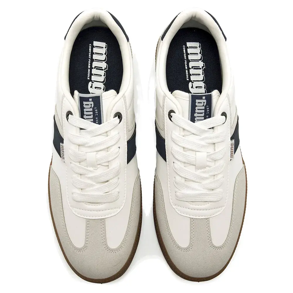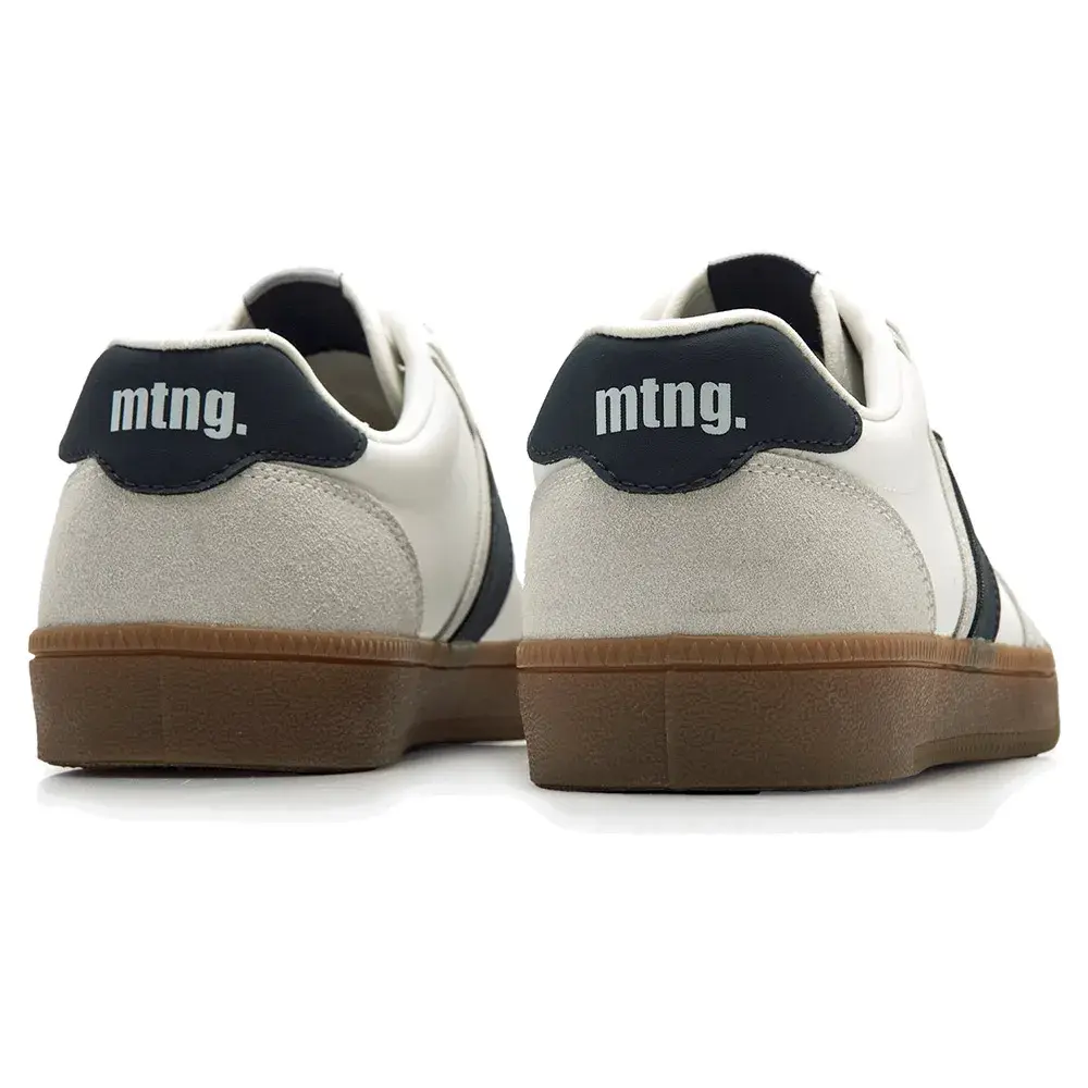 Мужские повседневные кроссовки от бренда Mtng, модель Goal белого цвета с темно-синими и серыми деталями.