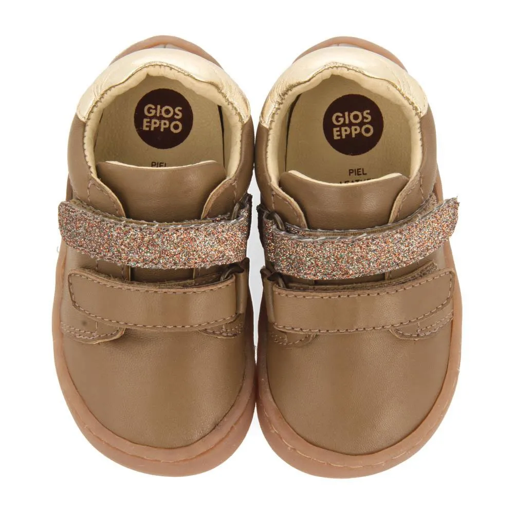 Кроссовки темно-серого цвета с блестками и регулируемыми застежками без анатомических элементов, которые могли бы препятствовать оптимальному развитию стопы.