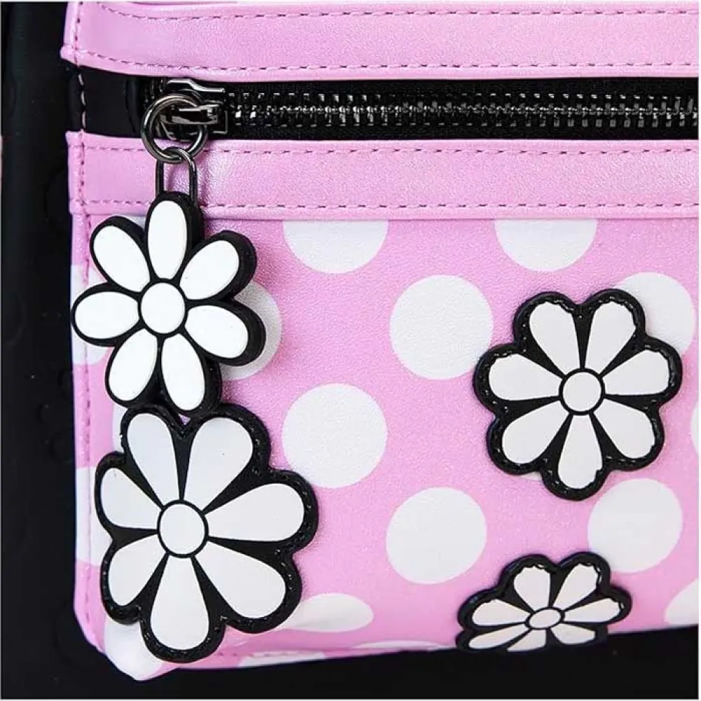 Проявите свою внутреннюю модницу с мини-рюкзаком LOUNGEFLY Floral Rock Minnie - стильным и практичным аксессуаром для современного поклонника Disney. В этом привлекательном рюкзаке легко сочетаются острые рок-н-ролльные флюиды с культовым шармом Minnie Mouse, что делает его идеальным аксессуаром для повседневных приключений.