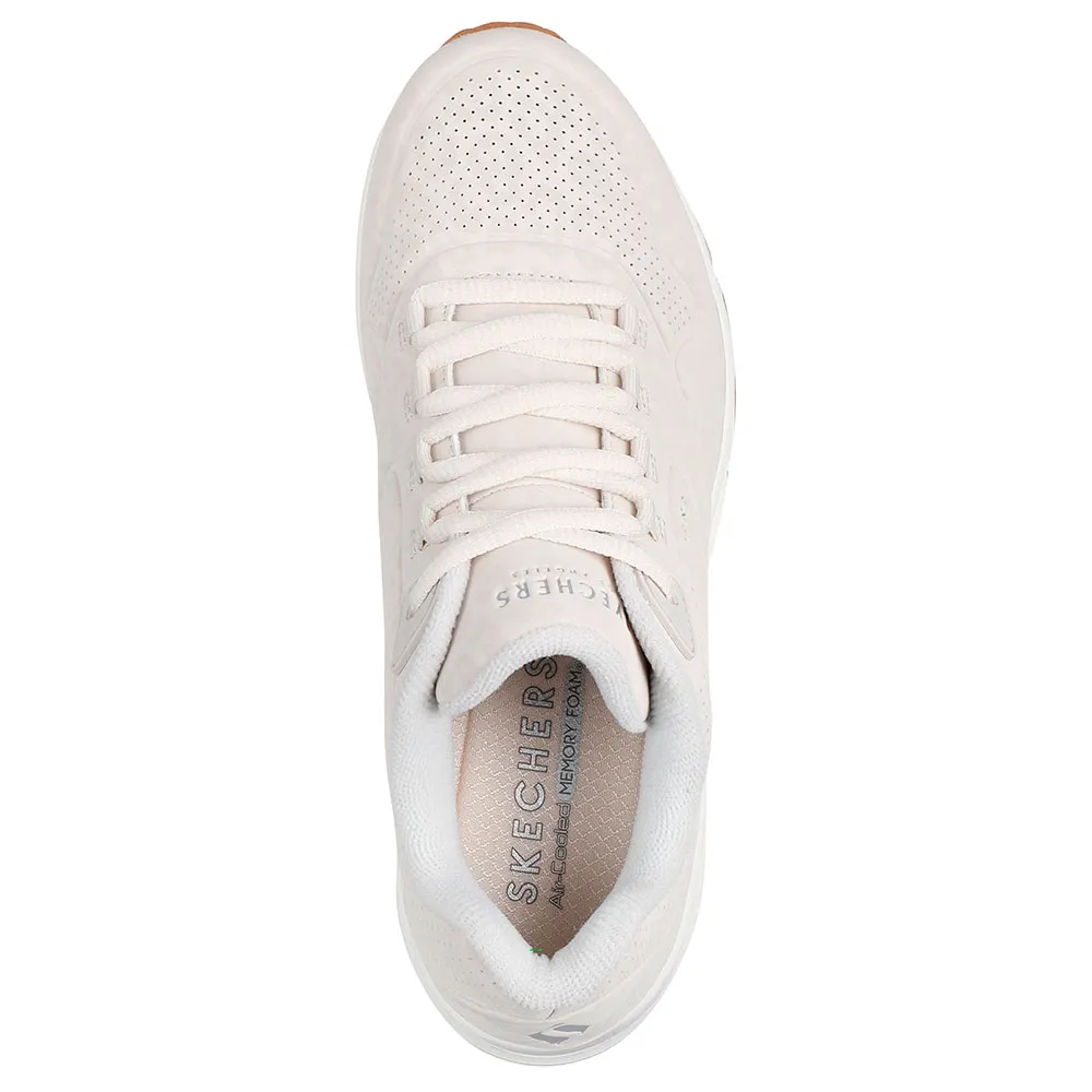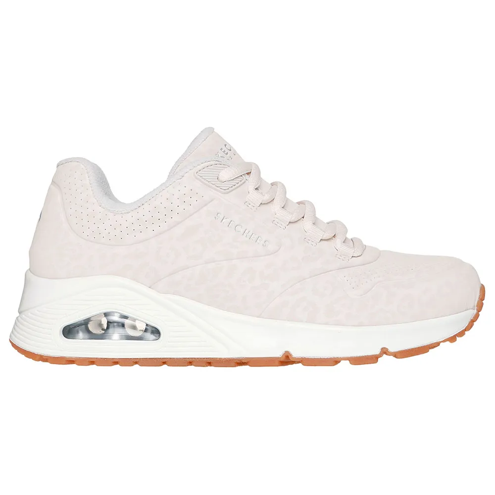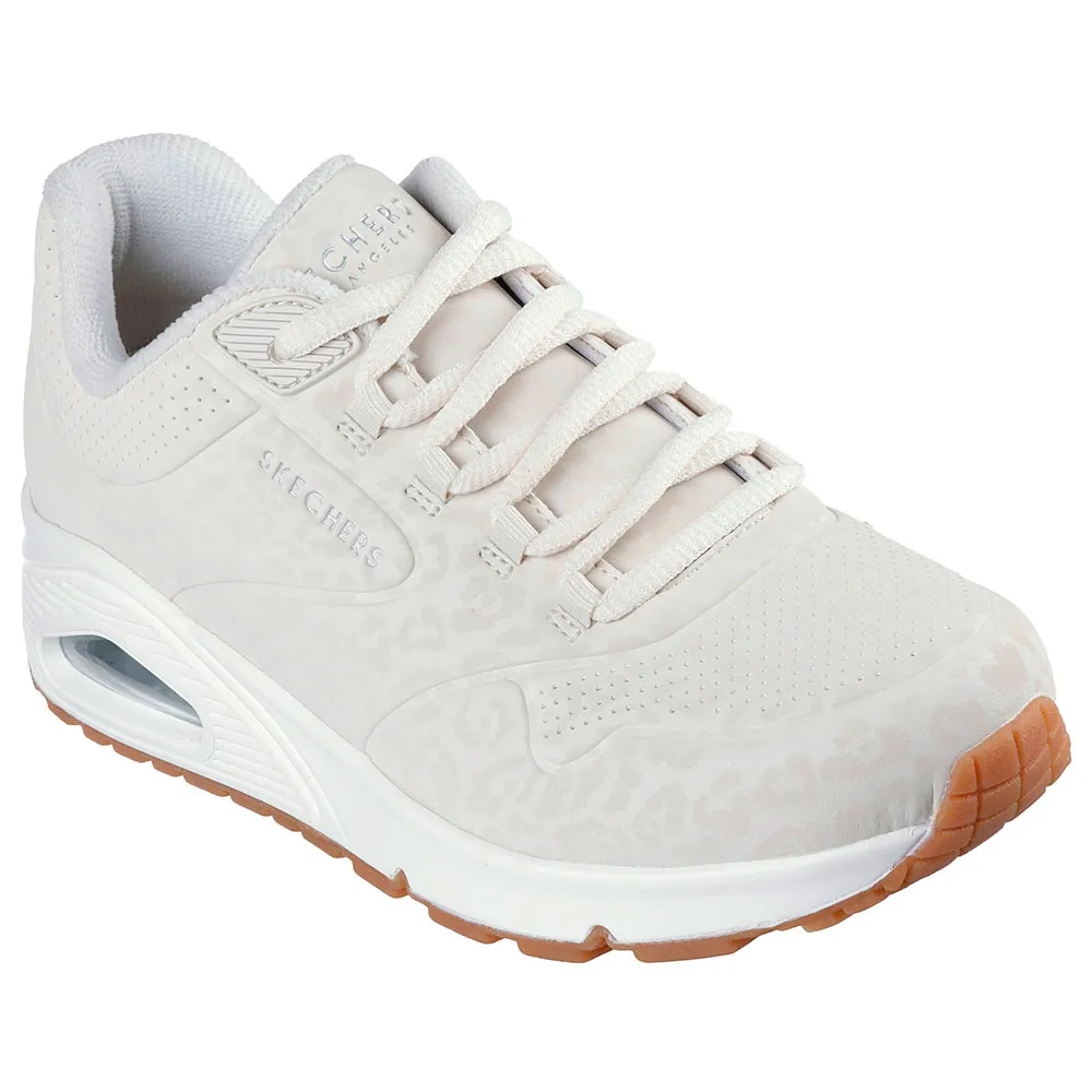 Прогуляйтесь по дикой стороне в стильной одежде Skechers streetв„ UNO - Kat-Neato. Модель на шнуровке с верхом из веганской кожи с леопардовым принтом в тон, стелькой из пены с эффектом памяти с воздушным охлаждением и видимой промежуточной подошвой Skech-AirB airbag.