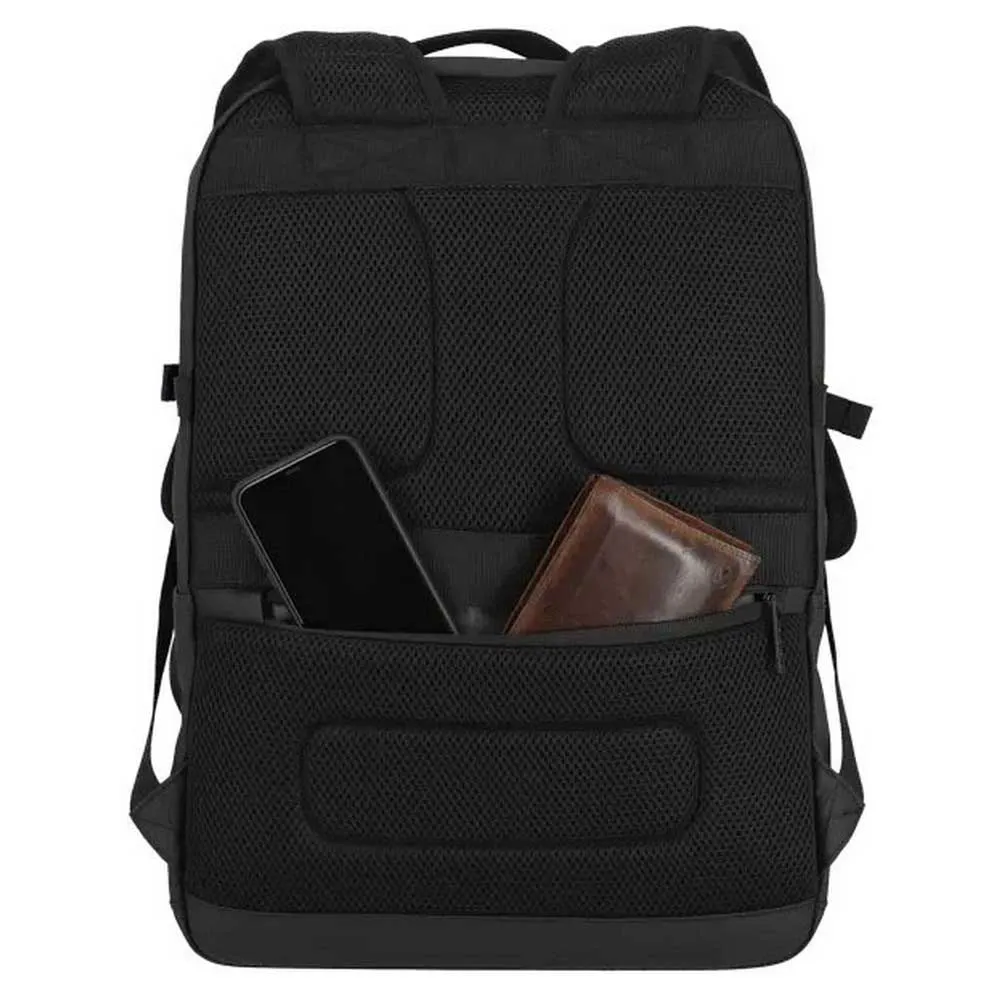 Передний карман оснащен удобным органайзером для аккуратного хранения мелких предметов, таких как ключи, ручки и мобильный телефон. Функция фиксации позволяет удобно прикрепить рюкзак к ручке чемодана, а потайное отделение сзади обеспечивает дополнительную безопасность ваших ценностей.