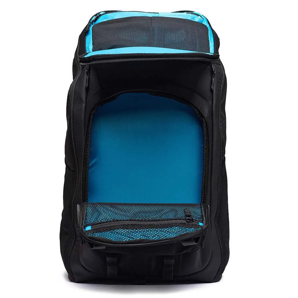 * Отделения: Основное отделение для хранения, водонепроницаемое базовое отделение, мягкий чехол для ноутбука, множество внутренних и внешних карманов на молнии, двойные сетчатые держатели для бутылок, внешний чехол для шлема.