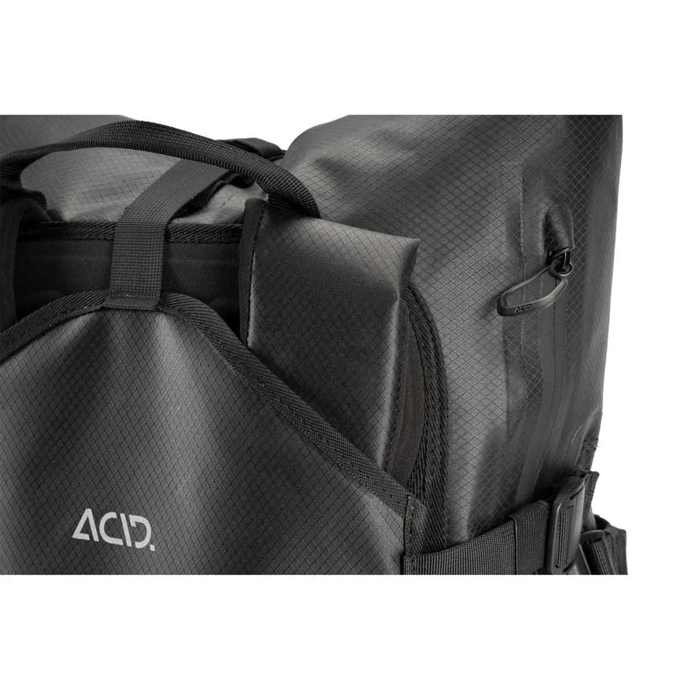 Ощутите новый уровень удобства благодаря интегрированной системе ACID CILink. Этот продуманный интерфейс позволяет быстро и надежно закрепить рюкзак на любой совместимой багажник ACID или CUBE за считанные секунды. Надежное крепление предотвращает смещение и дребезжание во время поездки, обеспечивая безопасное и удобное решение для переноски. Когда вы доберетесь до места назначения, одним простым движением сумка мгновенно превратится в удобный рюкзак, предоставляя вам свободу движений. Попрощайтесь с потной спиной и громоздкими креплениями для сумок.