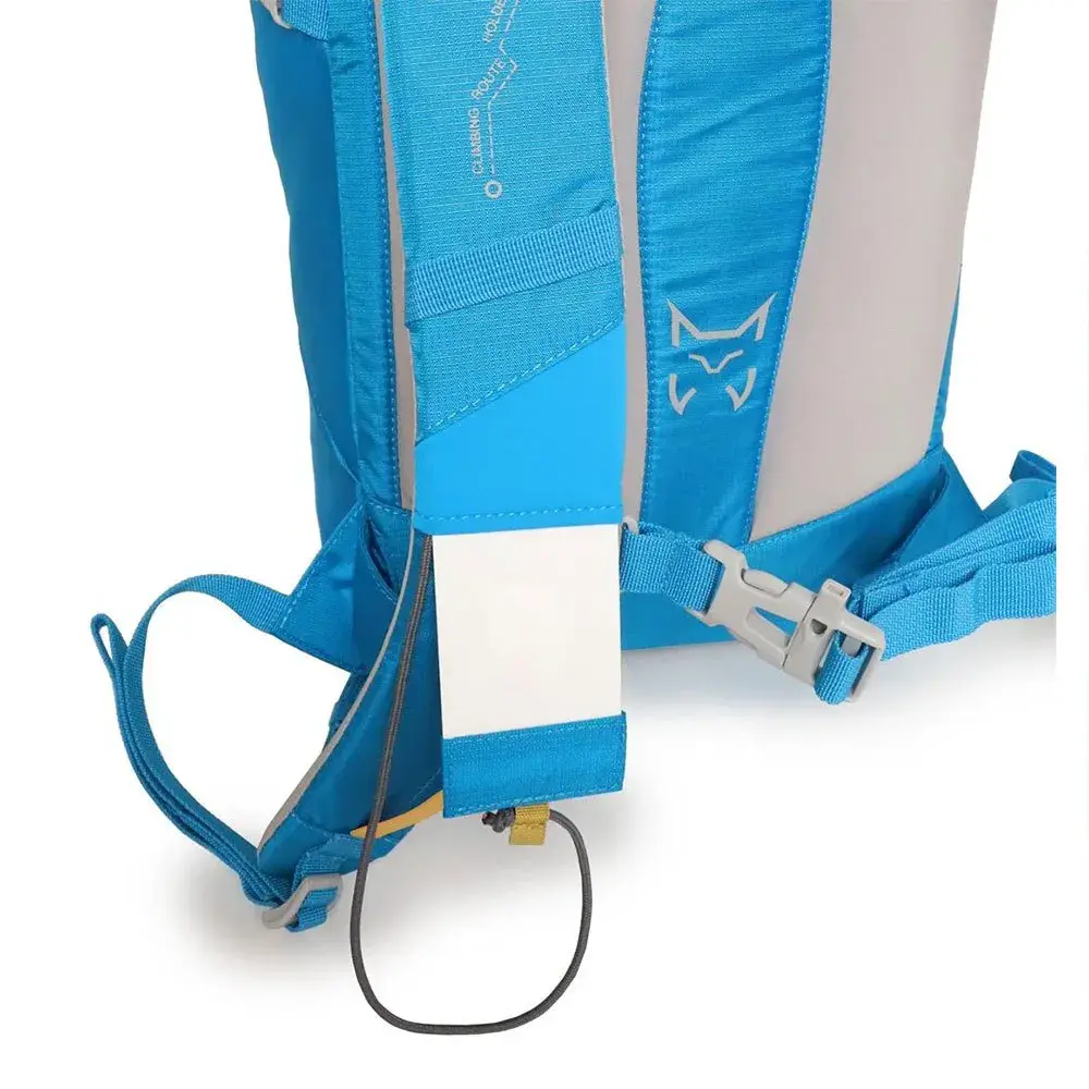 Он также имеет регулируемый ремень для каски и веревки и противоположный открывающийся ремень для легкого доступа.