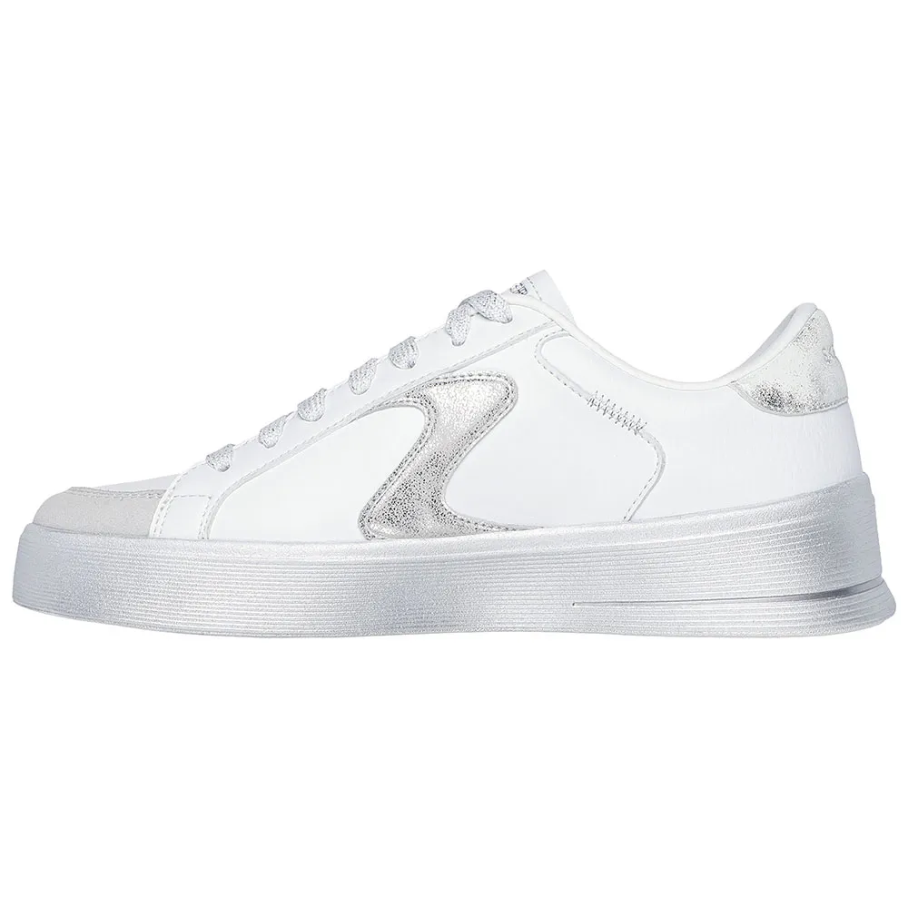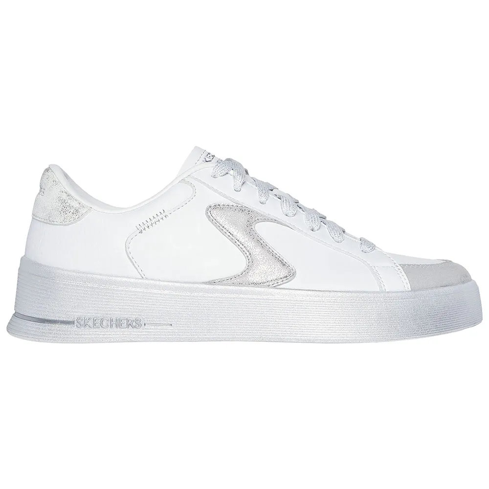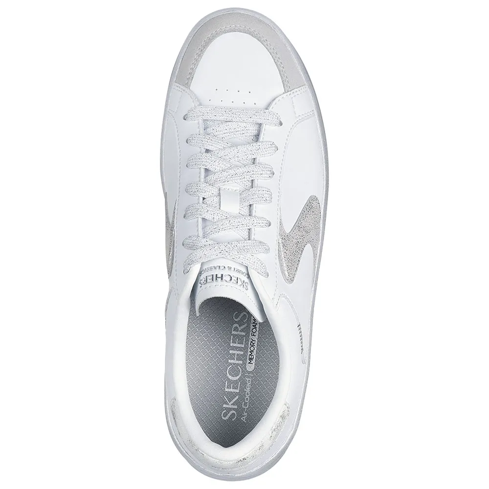 Верх на шнуровке из дюралайтера с металлической отделкой, мягкая стелька Skechers с воздушным охлаждением Memory FoamB и скрытая танкетка.