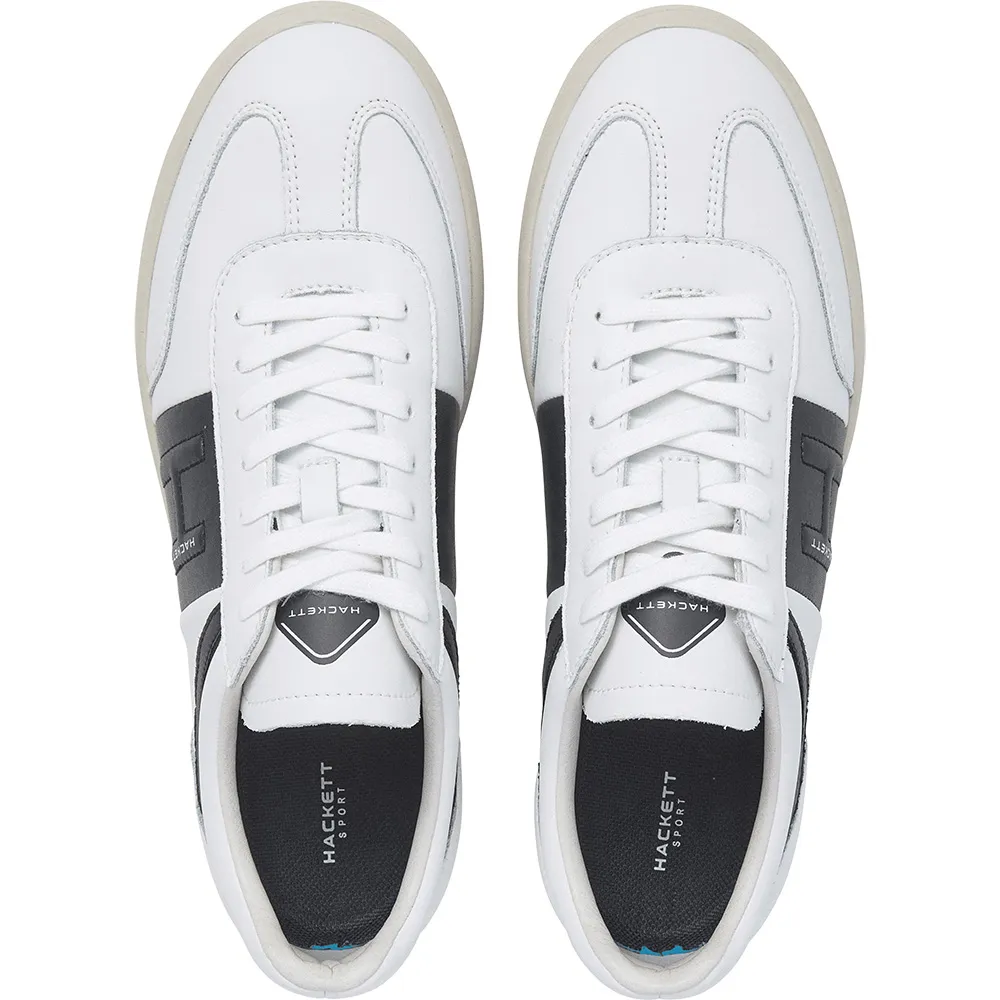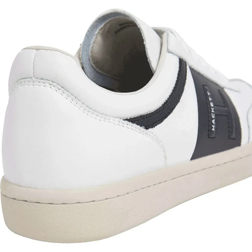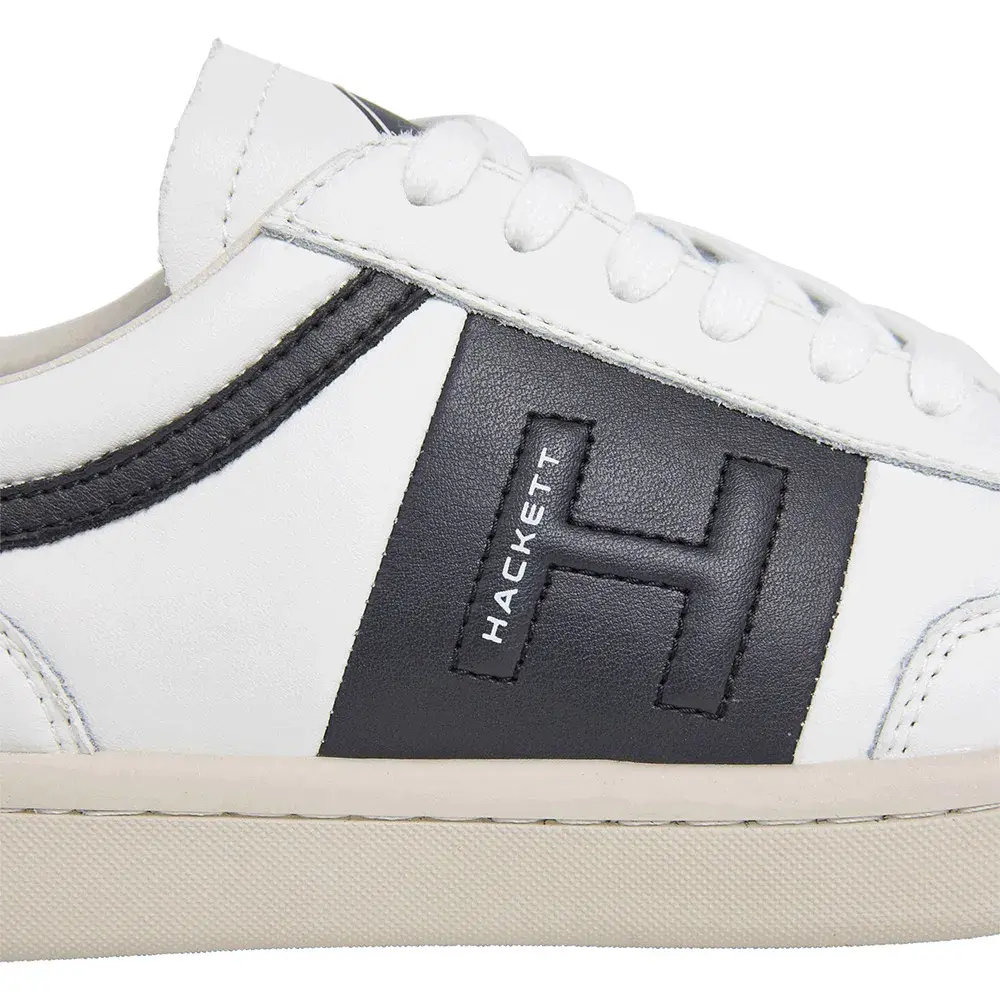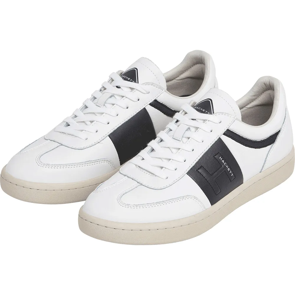 Спортивные кроссовки Bond Just со вставкой повседневного силуэта вокруг воротника, выполненные из переработанной кожи, двухцветная резиновая подошва с логотипом Hackett Sport, съемная стелька, логотипы Hackett Sport и монограммы H на контрастной по цвету четверти детали.
