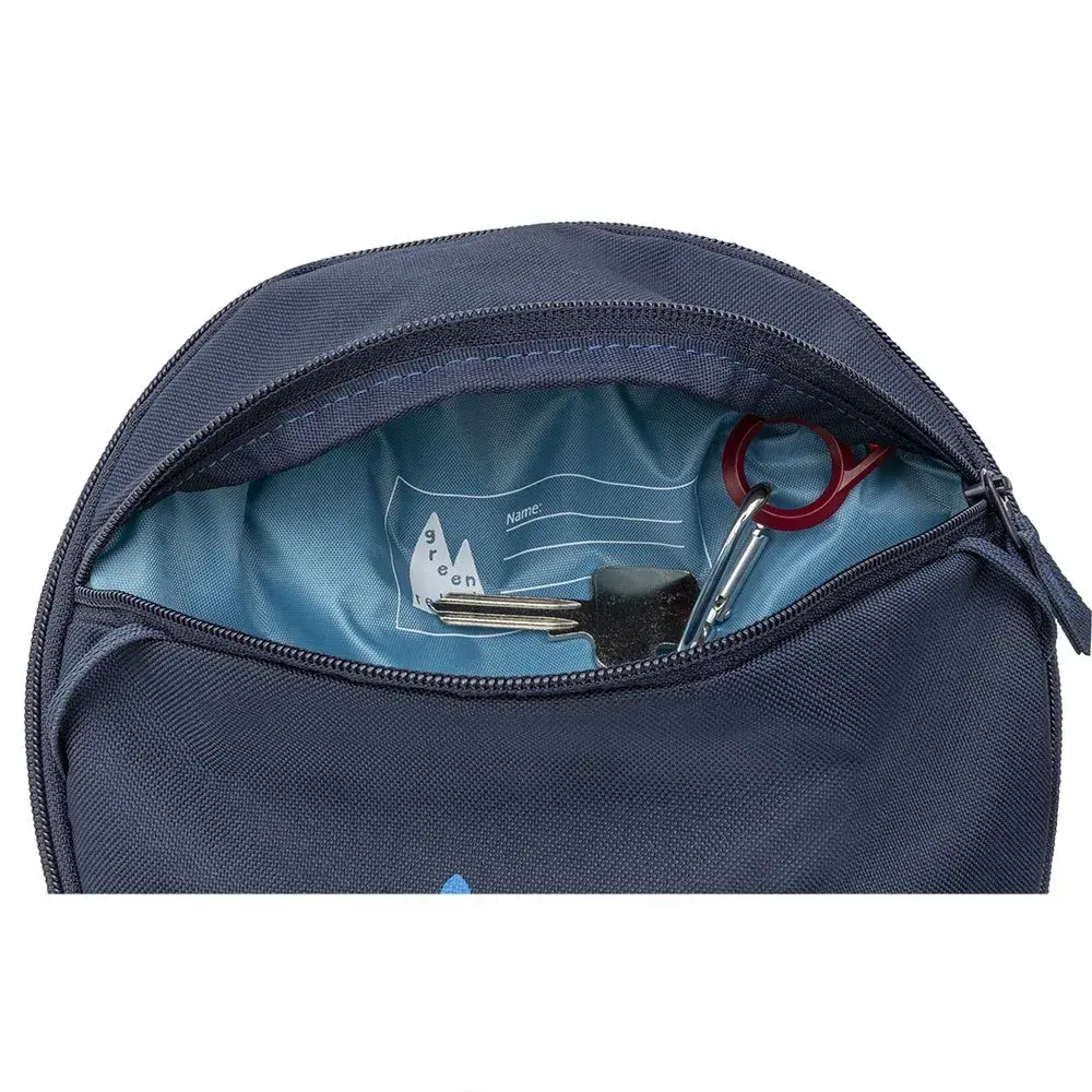мягкая спинка, анатомические плечевые ремни, регулируемый нагрудный ремень для растущих детей, передний карман на молнии, 2 внешних сетчатых кармана, петли для крепления снаряжения и шлема, светоотражающие элементы, удобные для детей пряжки, удобная застежка-молния, кольцо для ключей, съемный набедренный ремень из тесьмы, именная этикетка внутри.