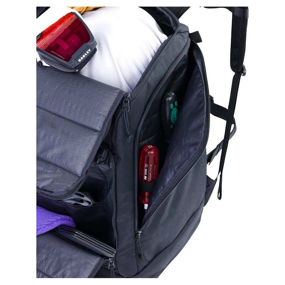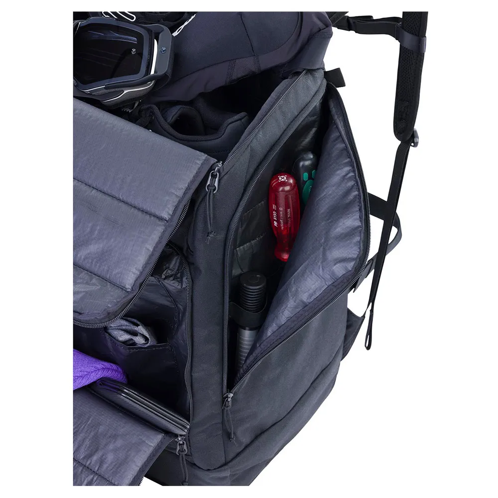 - Удобно храните лыжные/сноубордические ботинки в отделении для ботинок, аккуратно упакованном отдельно от остального снаряжения.