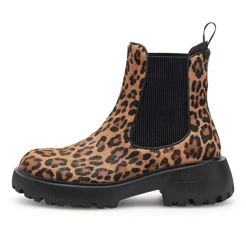 Aya leo изготовлена из 100% сертифицированной lwg воловьей кожи с длинношерстной текстурой и ярким леопардовым принтом.