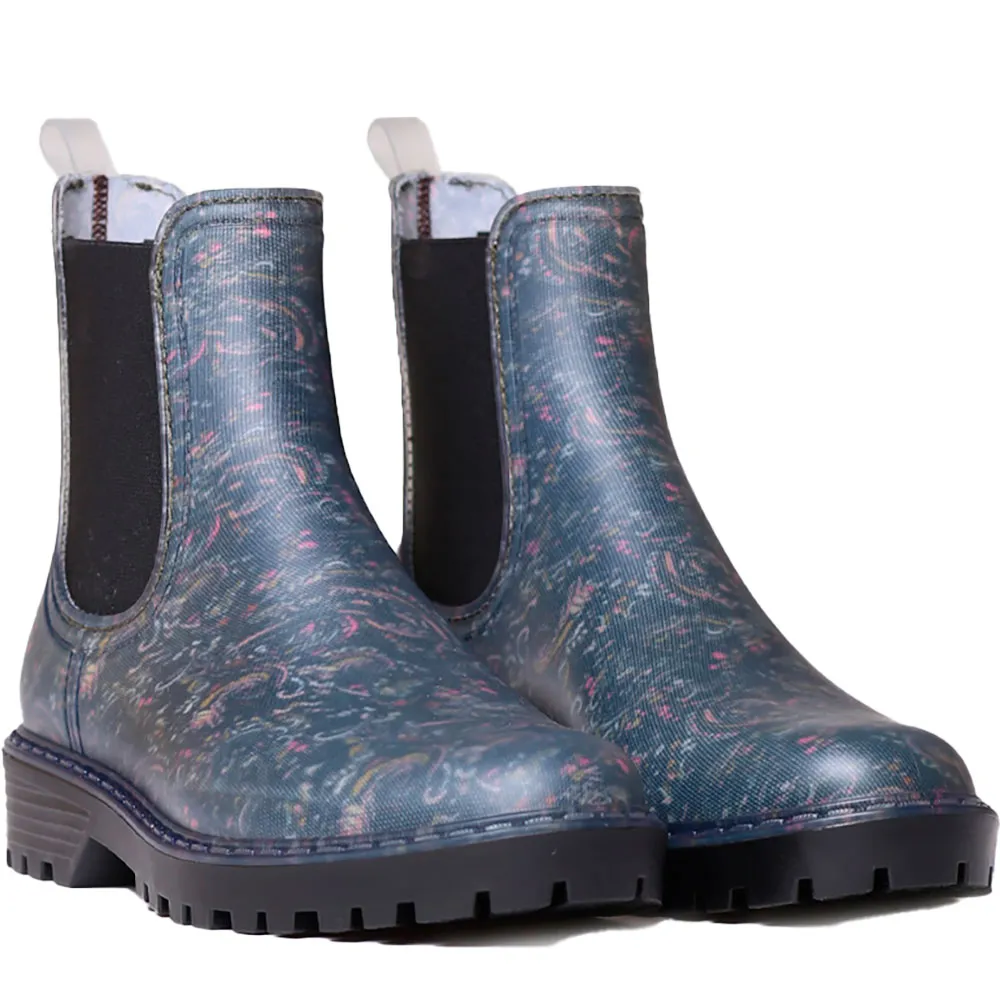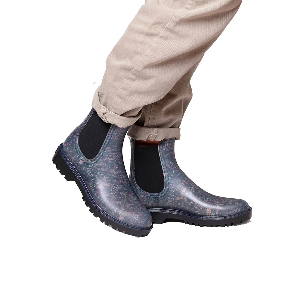 Эти женские водонепроницаемые ботинки изготовлены из резины с ярким принтом матовых тонов.