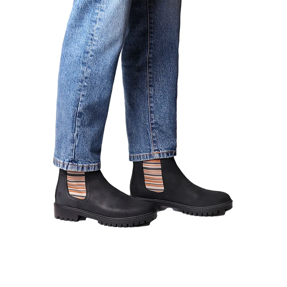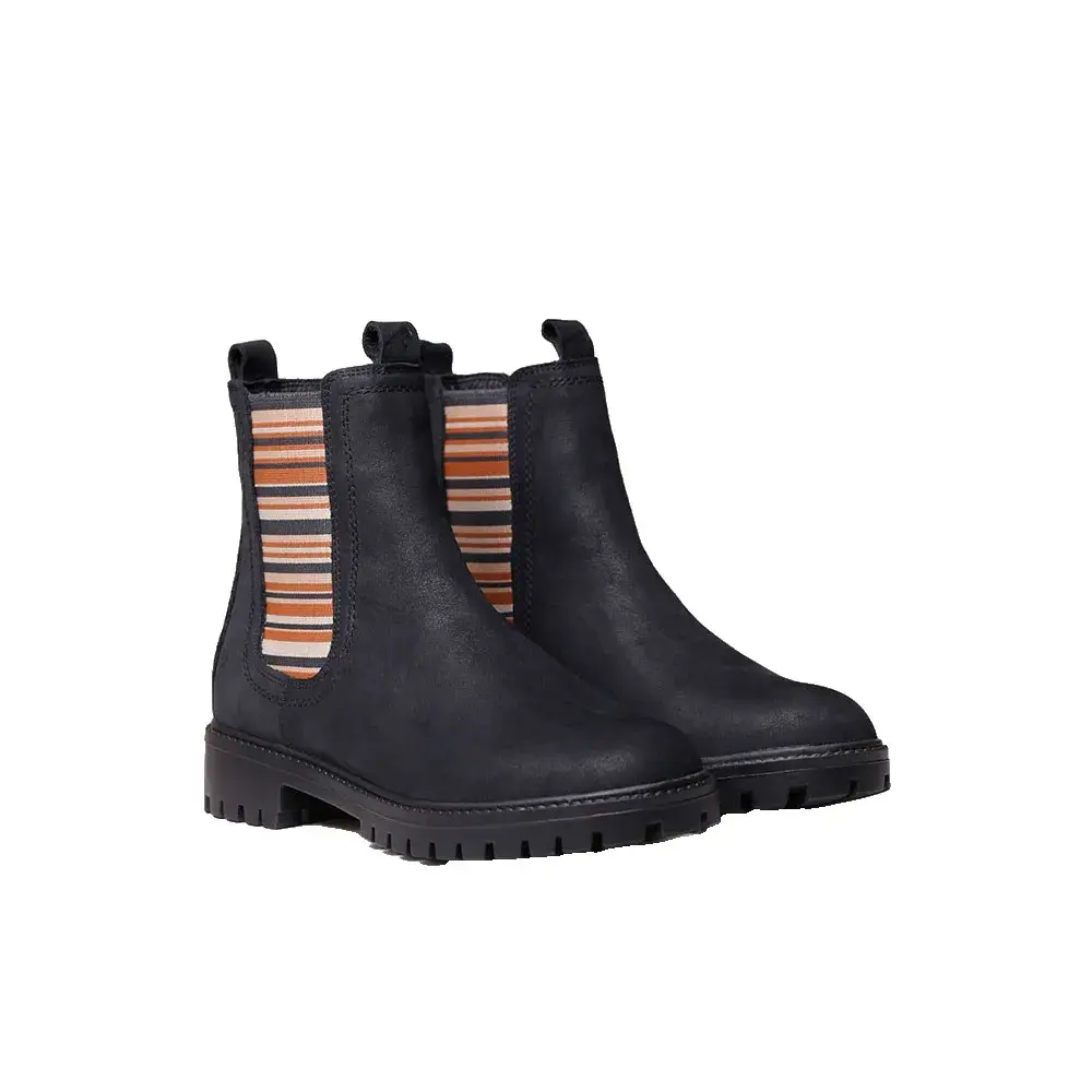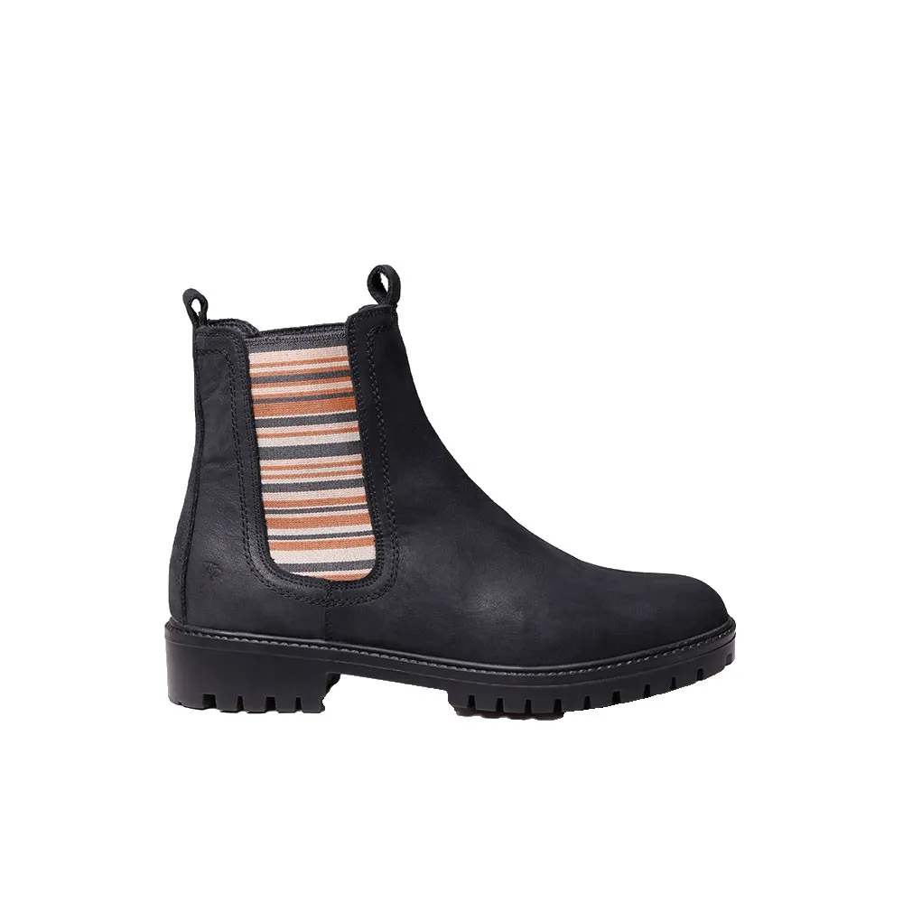 Эти женские ботильоны изготовлены из кожи и украшены полосатыми резинками.