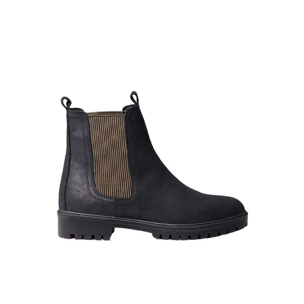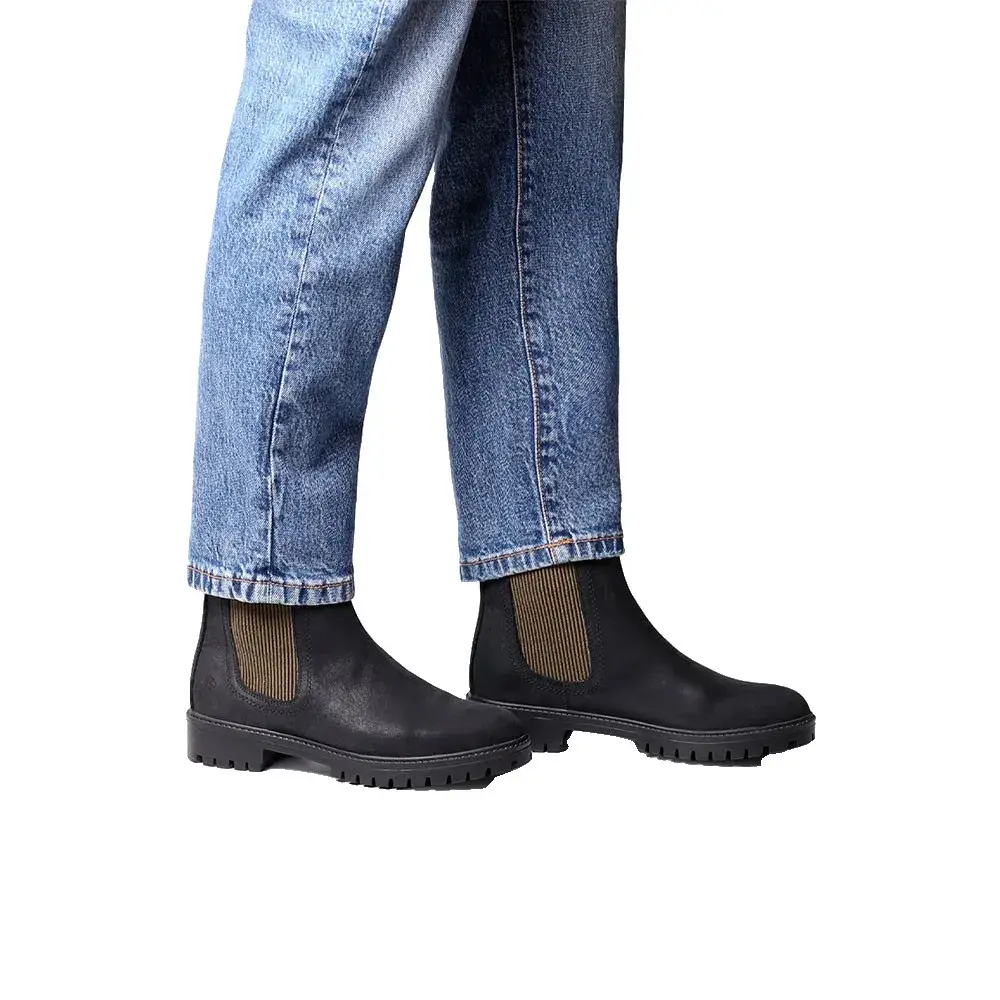 Эти женские ботильоны изготовлены из кожи и украшены контрастными резинками.