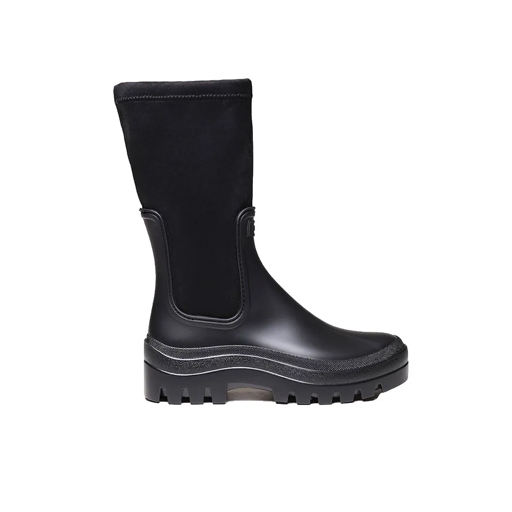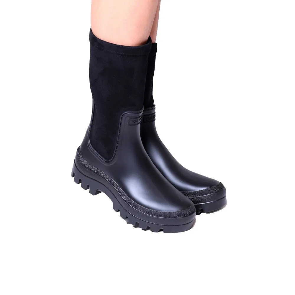 Эти женские непромокаемые ботинки изготовлены из резины и лайкры с эффектом однотонной замши.