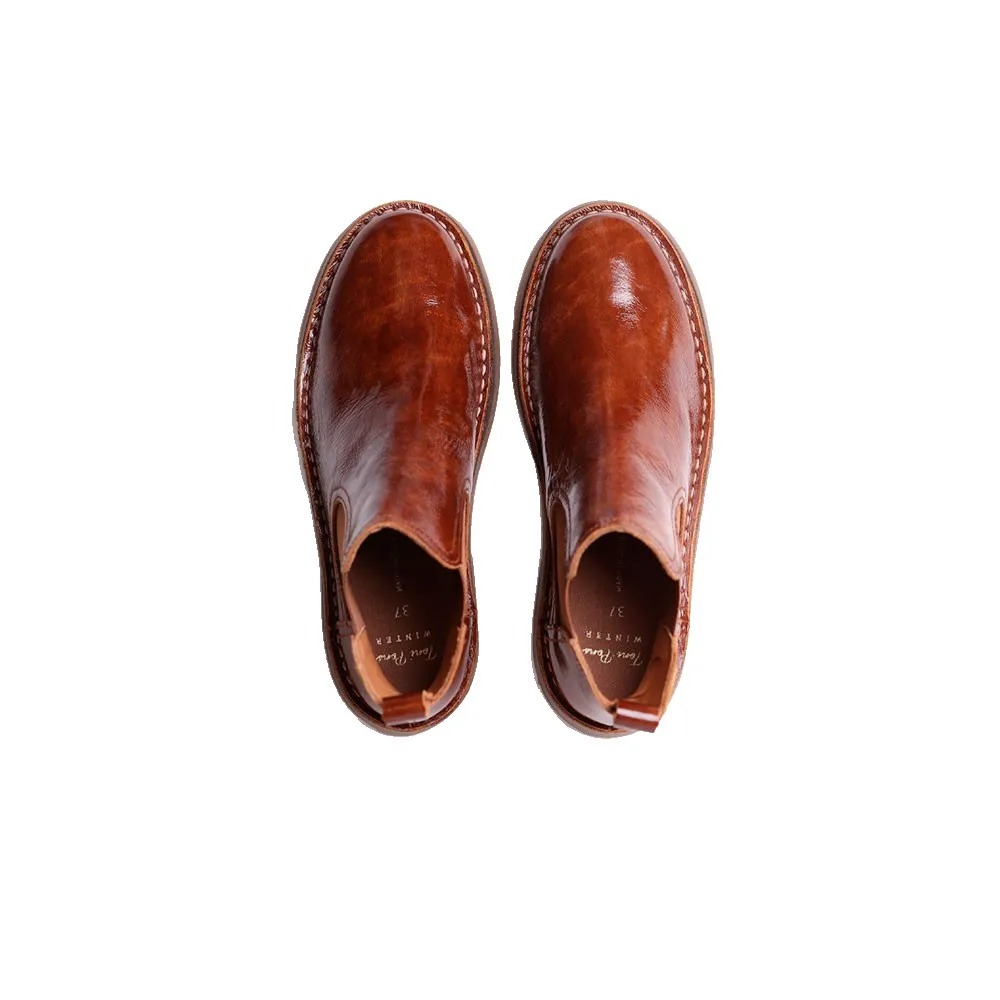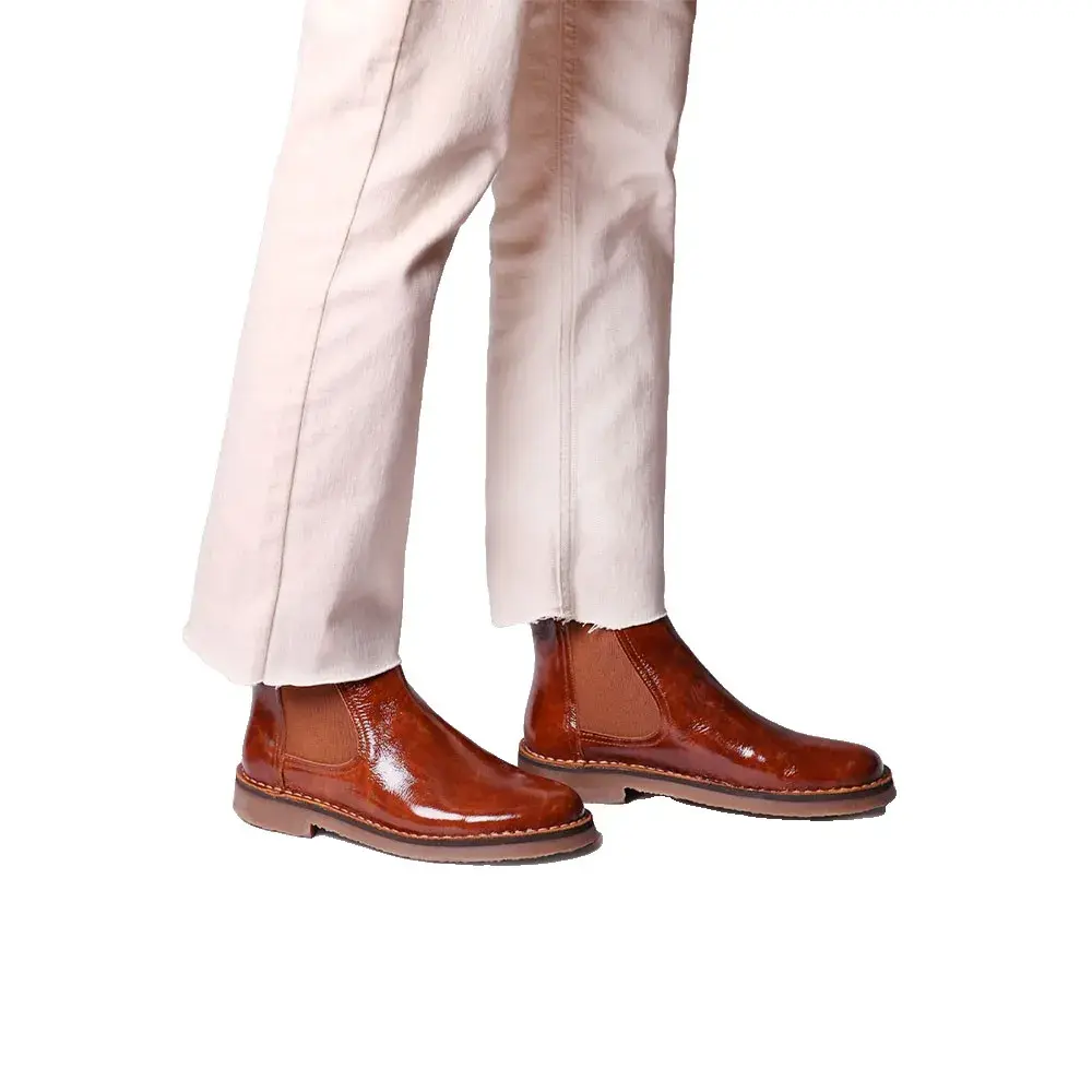Эти женские ботильоны изготовлены из лакированной кожи.