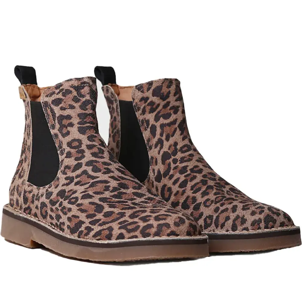 Эти женские ботинки изготовлены из кожи с животным принтом.
