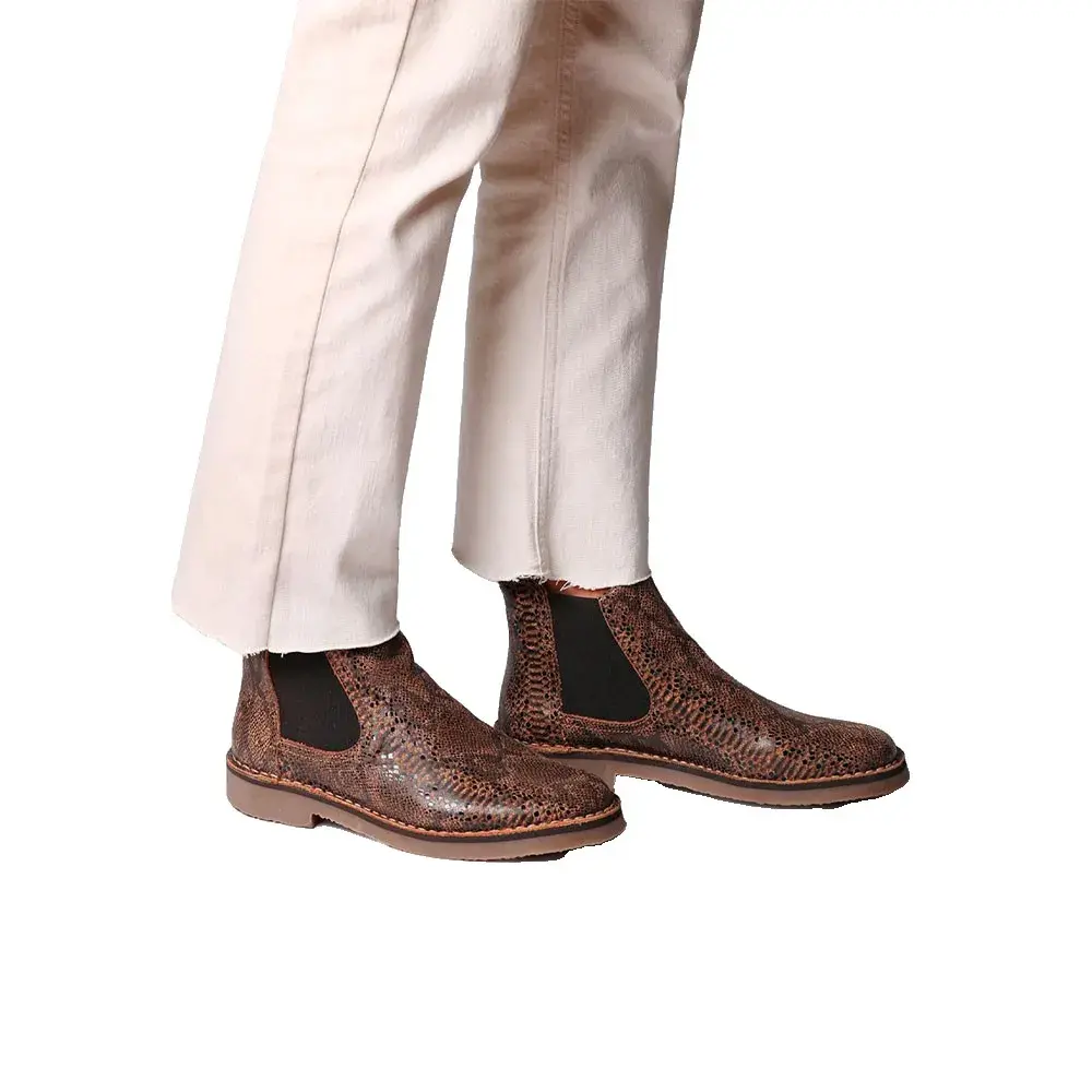 Эти женские ботильоны выполнены из кожи с эффектом змеи.