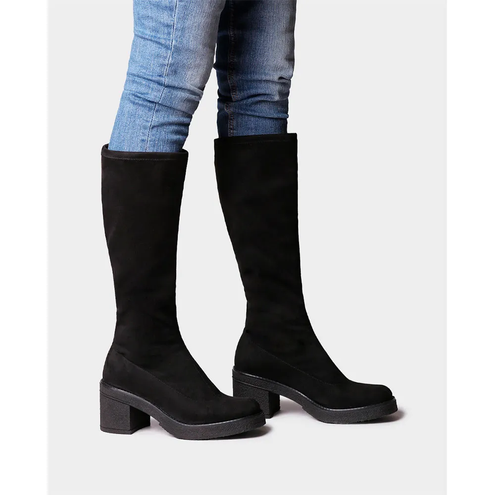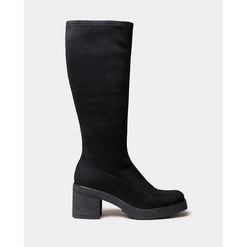Эти женские высокие ботинки изготовлены из эластичной ткани с эффектом мягкой замши.