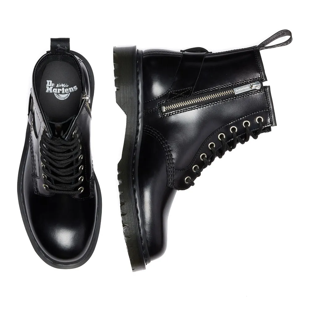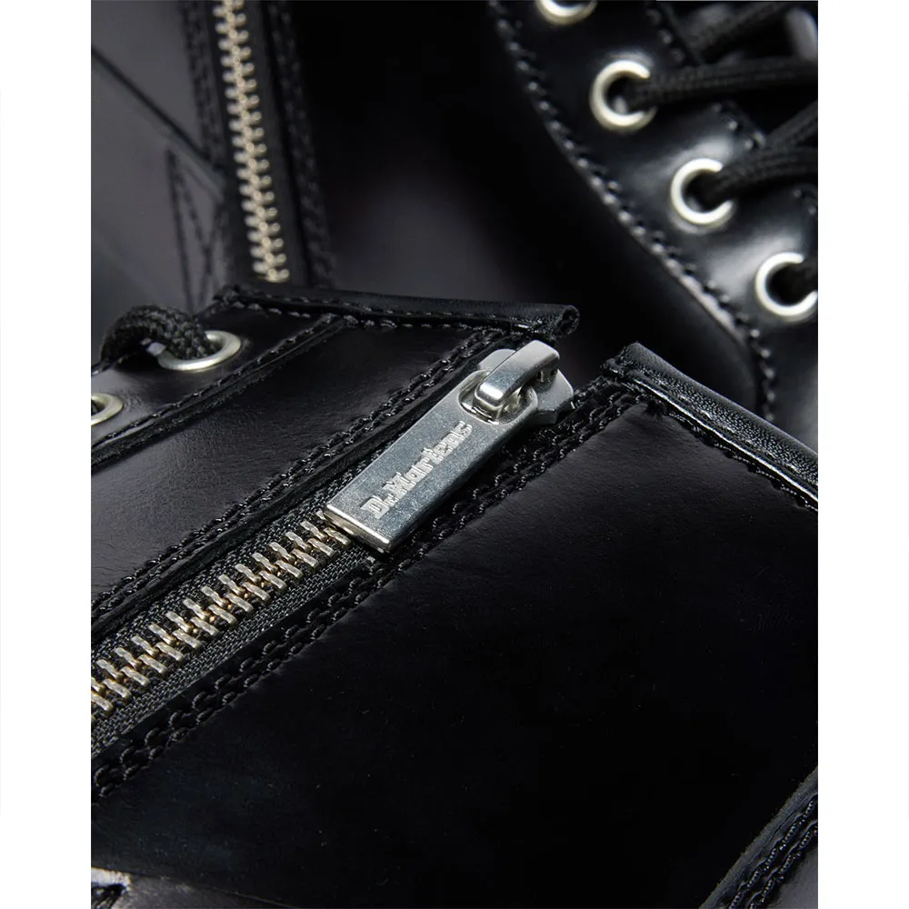 Архивная ДНК обновлена. Ботинок 1460 Harness с 8 проушинами сочетает в себе наследие с усиленной детализацией. Мы добавили сильную дозу фурнитуры из матового серебра в виде ремня безопасности, заклепок и проушин. С внутренней молнией для легкого надевания и снятия, с монохромными вставками из черных шнурков, черной петлей на каблуке и черной прорезной строчкой. И все это поверх нашей подошвы smoke с классическими канавками.