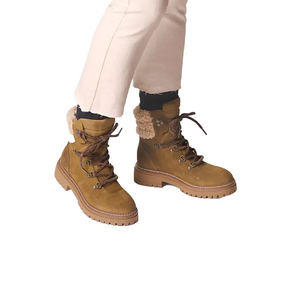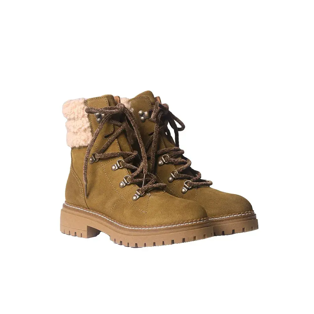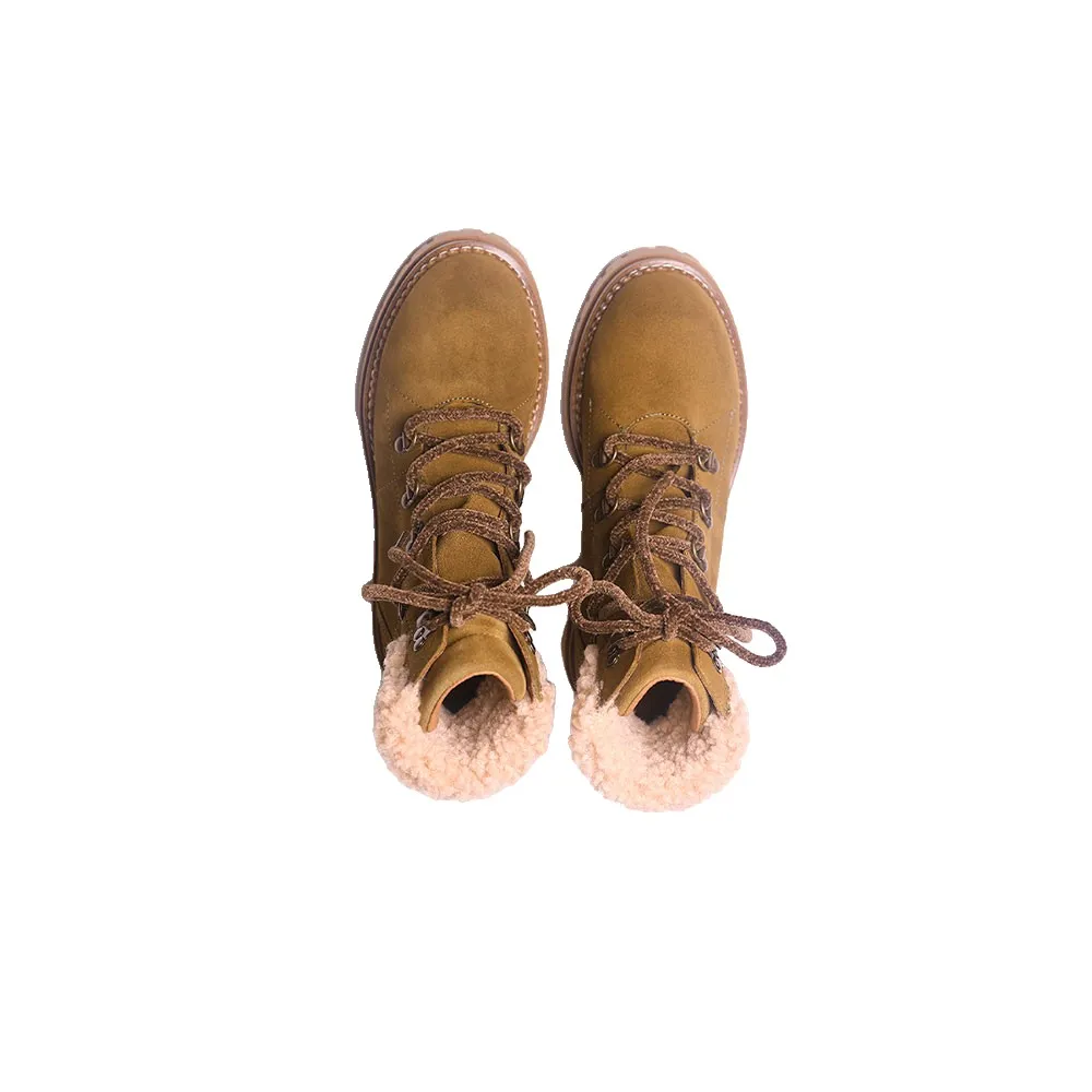 Женские ботильоны из однотонной замши с отделкой из овчины.