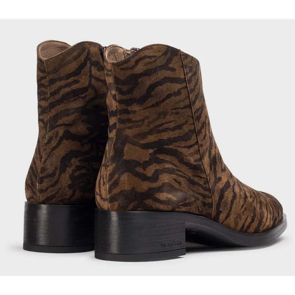 Кожаные ботильоны с животным принтом, закругленным носком и толстым низким квадратным каблуком, создающие смелый и удобный стиль для повседневной носки.