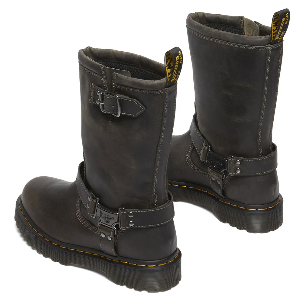 Почувствуйте превосходный комфорт с самого первого шага. Модель Anistone Hi разработана для ношения в течение всего дня. Продуманный воротник с подкладкой обеспечивает мягкую поддержку лодыжки. Верх изготовлен из высококачественной эластичной кожи, которая приятна на ощупь и со временем адаптируется к вашей ноге, обеспечивая индивидуальную посадку. В основе этого дизайна с высоким берцем лежит легендарная подошва Dr. Martens airwairв„ - инновация в области комфорта, которая определяла бренд на протяжении десятилетий. Эта основа на воздушной подушке обеспечивает исключительную амортизацию и характерный отскок, уменьшая усталость и гарантируя, что вы будете чувствовать себя комфортно на ногах независимо от того, куда приведет вас день.