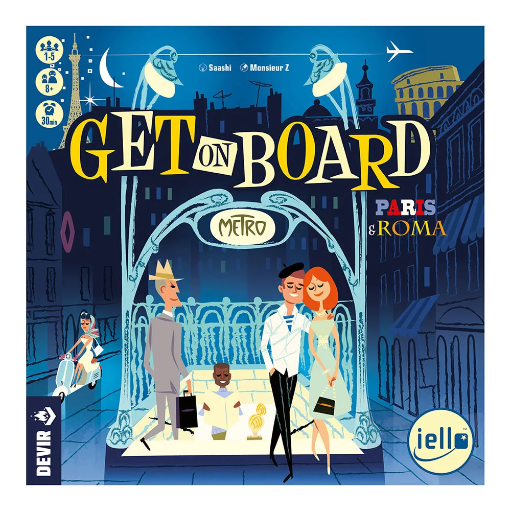 В городе, когда темнеет и начинают зажигаться уличные фонари, путешественники фантазируют о своих планах на ночь. Прощай работа. Мы садимся в метро. Метро, грохочут машины, сменяются времена года. Приближается ночь, пойдем на концерт или поедим чего-нибудь? Путешествуя с пересадками, мысли погружаются в грезы, впитывая романтическую атмосферу городов любви. Кто знает, куда заведет нас это путешествие, разработанная Сааши и проиллюстрированная месье Зи, игра Get On Board Paris & Roma - это игра, в которой от 1 до 5 игроков в возрасте от 8 лет могут участвовать в играх продолжительностью около 30 минут. Продолжительность. Полностью независимая от своего предшественника, если вы уже знакомы с оригинальной Get on Board, в рамках которой вам приходилось проектировать автобусные линии в Лондоне и Нью-Йорке, эта версия будет вам хорошо знакома. Выучив несколько простых правил, вы сразу же начнете игру. Основная механика Get On Board Paris & Roma - переворачивать и записывать, поскольку на протяжении всей игры мы будем переворачивать серию карточек (билеты на метро в игре) и отмечать в нашей личной таблице проведенные встречи. В зависимости от количества игроков, поле подготавливается на стороне Парижа или Рима. Каждый участник берет фишки своего цвета. И да начнется игра! У вас есть 12 раундов, чтобы построить лучшую линию метро в городе. В каждом раунде вы открываете новую карту, на которой всем игрокам показан рисунок линии, который они должны выполнить. Доставьте пассажиров туда, куда они хотят, создайте наиболее эффективную линию и наберите как можно больше победных очков. Чтобы набрать очки, вы должны нарисовать линии метро, по которым пассажиры будут двигаться, пытаясь добраться до определенных пунктов назначения. Помогите бабушкам найти свое место работы, студентам - кино, флиртующим - рестораны, а туристам - оперы и театры. С другой стороны, на протяжении всей игры вы будете соревноваться за ряд переменных общих целей, что добавит игре напряженности. В отличие от оригинального Get on Board, это издание включает режим, которым можно наслаждаться в одиночку, в котором вы можете столкнуться с очень сложным испытанием против искусственного интеллекта игры. Get On Board Paris & Rome - это городская стратегическая игра, идеально подходящая для игры с семьей и друзьями. Игры быстрые и динамичные, с множеством различных вариантов начисления очков для игроков. Сосредоточитесь ли вы на быстром выполнении общих задач, чтобы претендовать на большее вознаграждение, или вы предпочтете накапливать пассажиров, которые дают вам больше бонусов. Как бы то ни было, всегда будет хорошей идеей обращать внимание на действия ваших соперников, чтобы попытаться угадать их стратегию. Создавайте лучшие линии метро в городе и наслаждайтесь прогрессом на полной скорости.