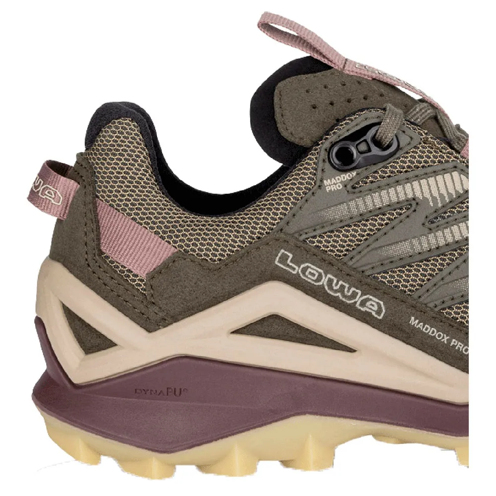 Проверенная система промежуточной подошвы LOWAВ DYNAPUВ, прочный верх из рипстопа и дышащая текстильная подкладка гарантируют спортивный уровень гибкости, благодаря чему MADDOX PRO LO Ws легко справляются с более сложными темпами, а также с динамичными быстрыми походными маршрутами.