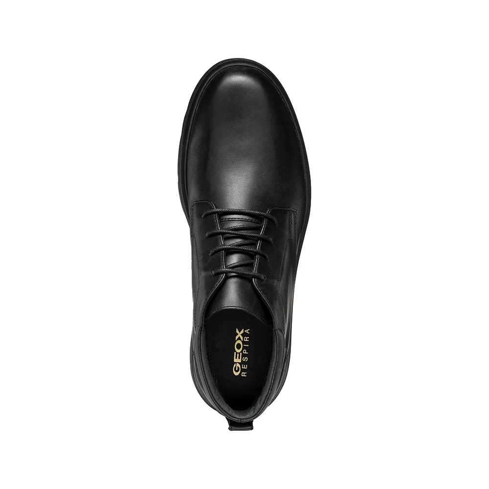 Предлагаемые в классическом черном варианте, эти туфли с водонепроницаемым верхом из мягкой гладкой кожи современного дизайна.