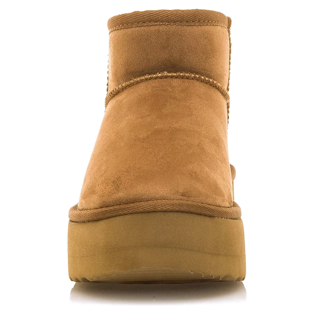 Женские ботильоны на меху верблюжьего цвета от Mtng, модель Nivia, в повседневном стиле, на платформе и австралийском дизайне с низким голенищем.