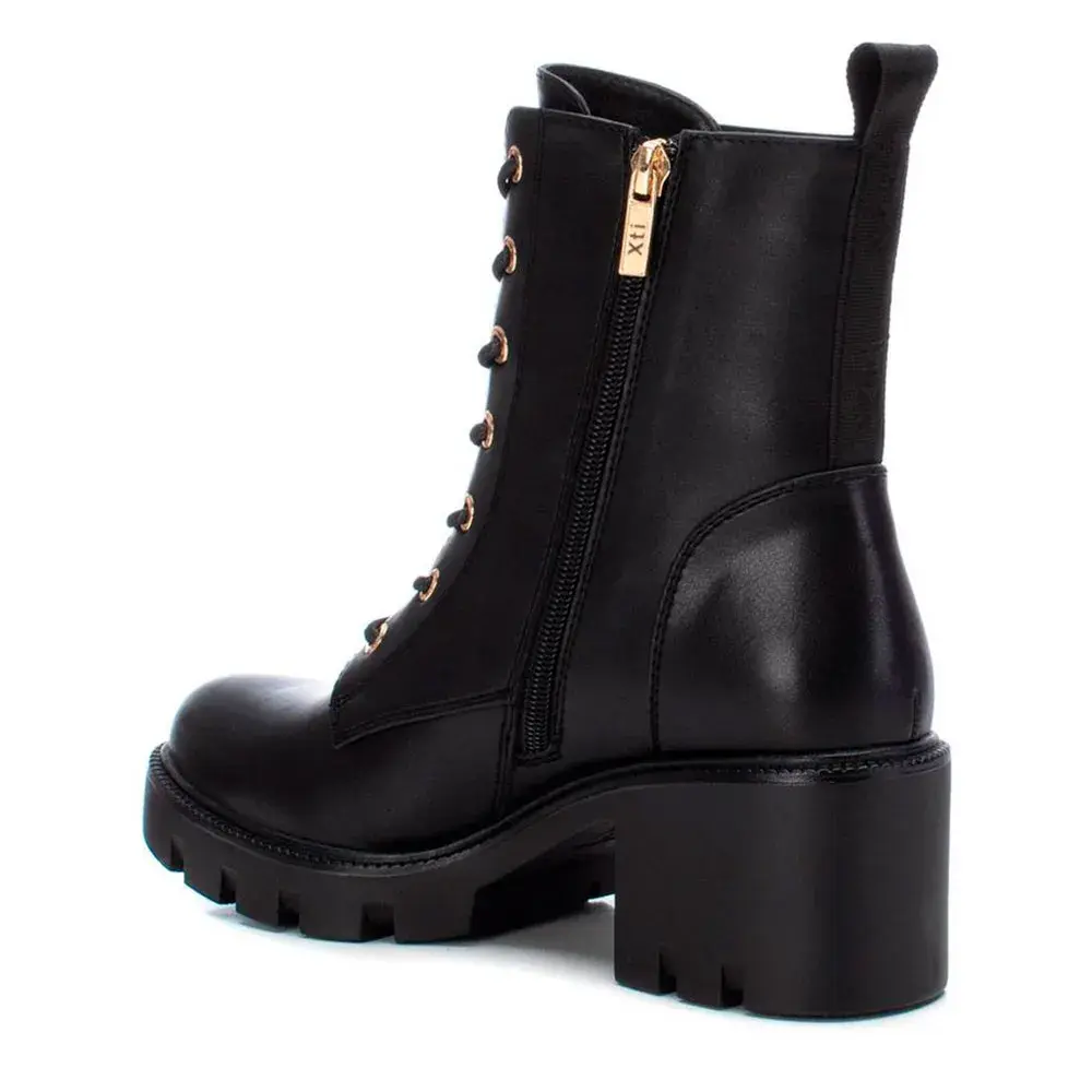 Женские ботильоны от Xti. Изготовлены из материала, имитирующего кожу. Застежка на молнию сбоку и шнурки для лучшей посадки. Съемник сзади. Широкий каблук 6 см с нескользящей резиновой подошвой. Эта модель сертифицирована как веганская всемирной организацией PETA (Организация по защите прав животных).