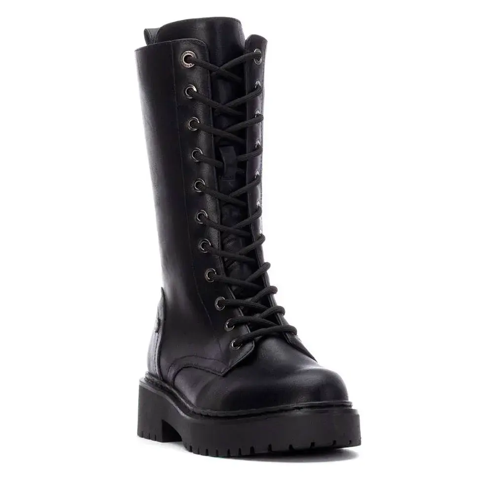 Женские ботинки от Refresh. Изготовлены из искусственной кожи с эффектом рептилии. Высота голенища 23 см. Внутренняя застежка-молния. Регулируемые шнурки. Сзади язычок для удобного надевания и снятия. Толстая резиновая подошва. Со съемной стелькой. Эта модель сертифицирована как веганская всемирной организацией PETA (Организация по защите прав животных).